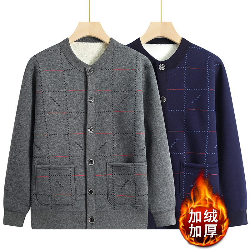 中高年男性セーターの父は秋冬にベルベットを着てニットのコートを厚くした祖父の子羊のベルベットの保温下着を着た