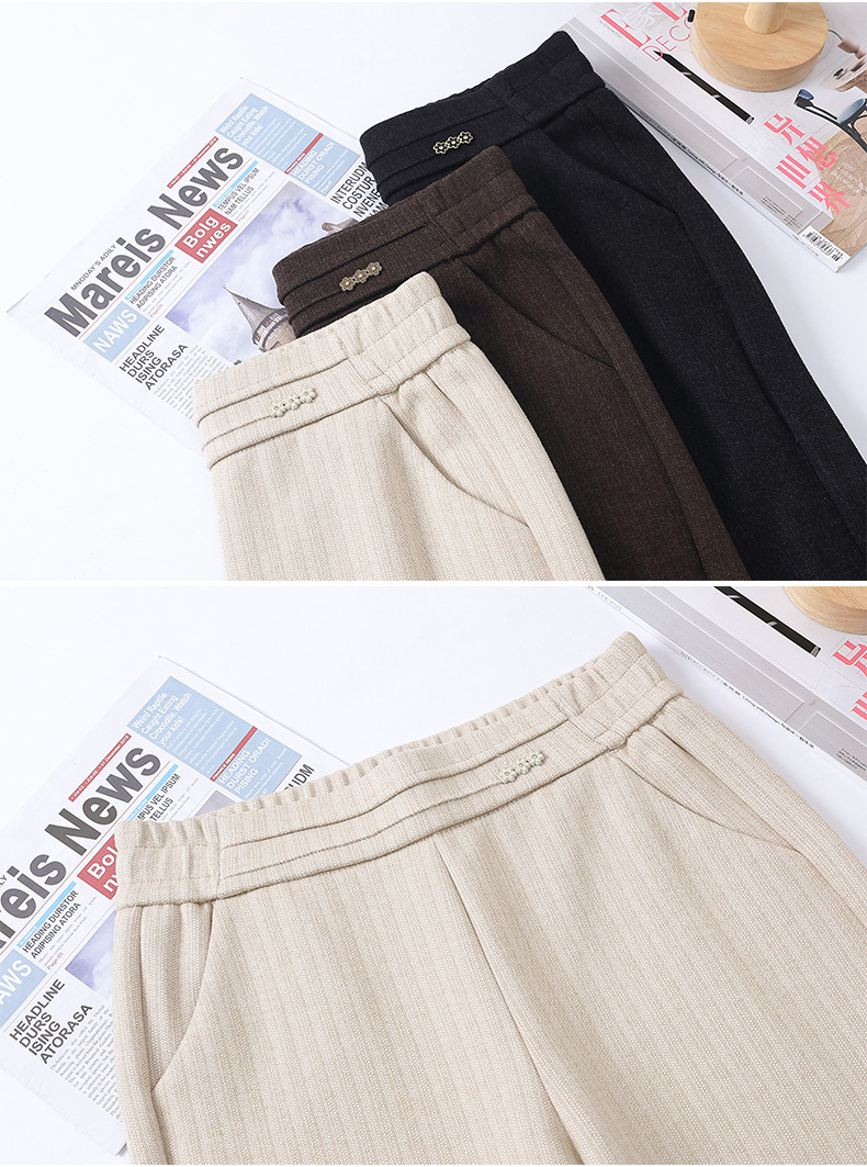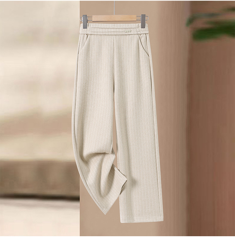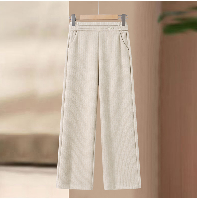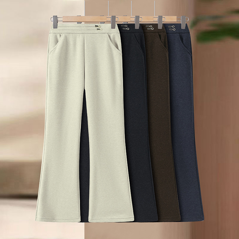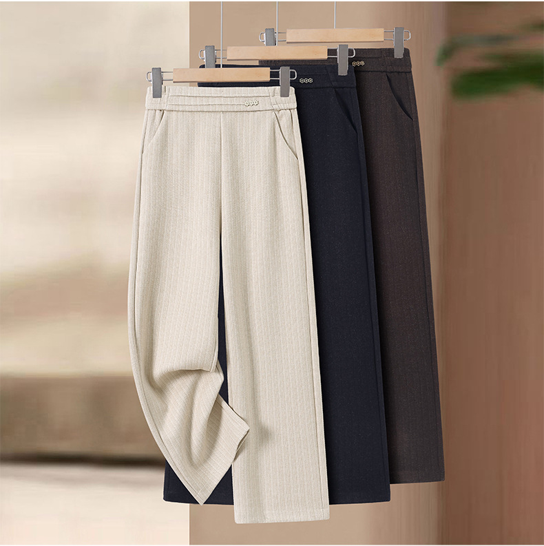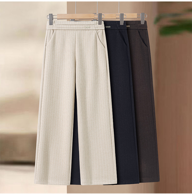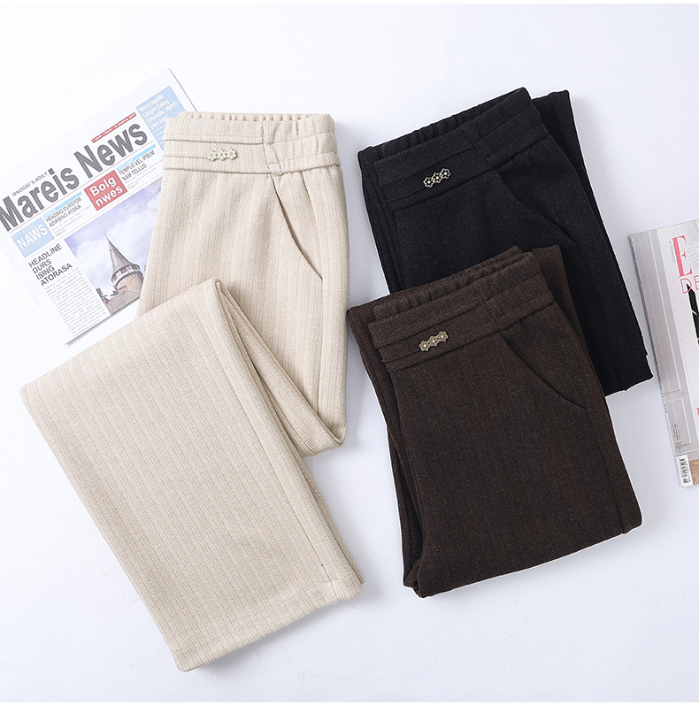 ママの春秋用ストレートパンツ2025新作中高年女性冬服裏起毛厚手カジュアルパンツゆったりワイドパンツ