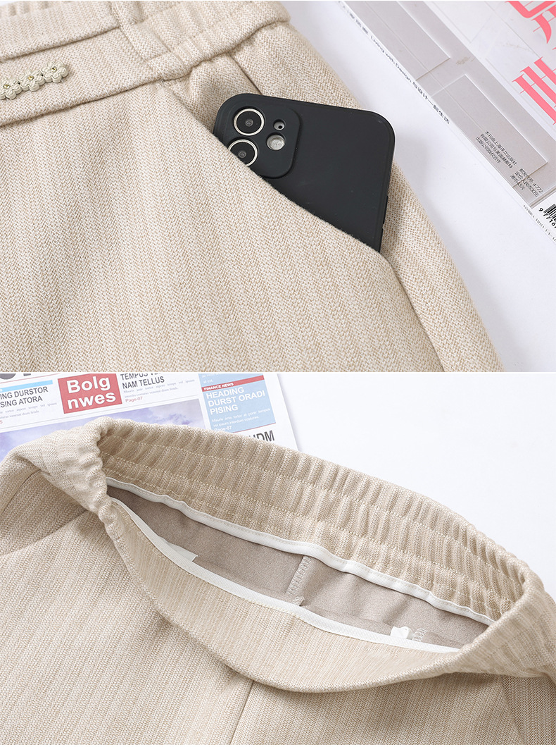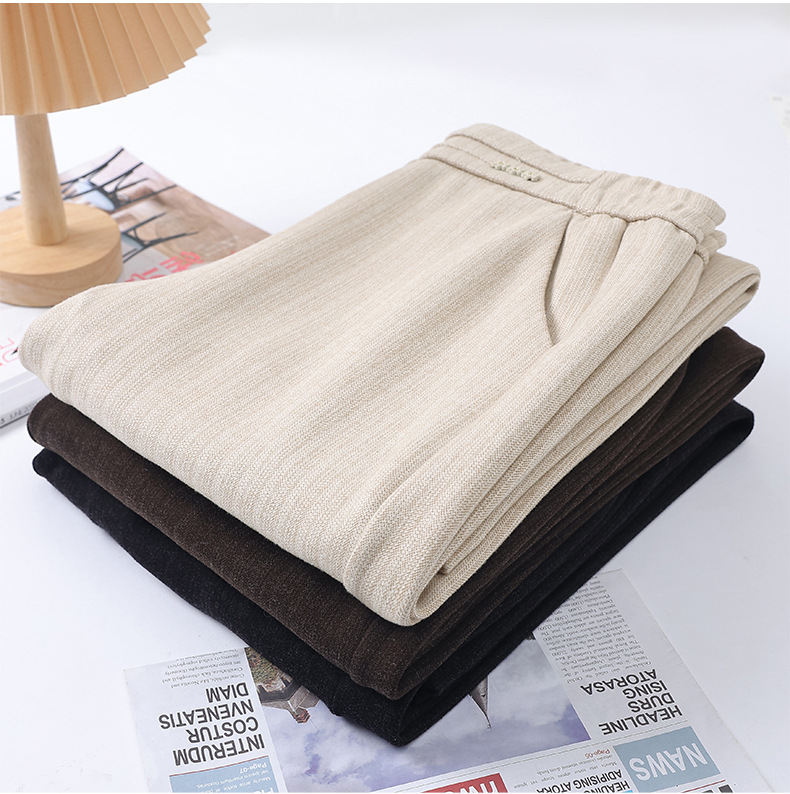 お母さんのコーデュロイのズボンは秋冬におばあさんの服を着ています。