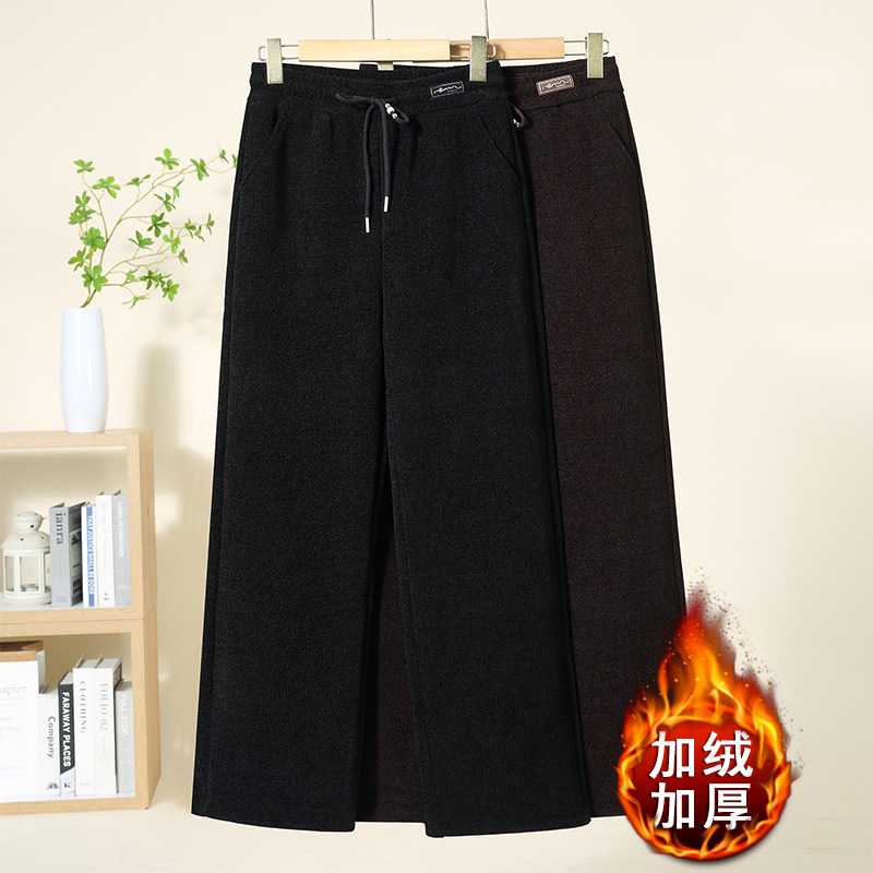 妈妈宽松时尚加绒加厚裤子中年妇女外穿阔腿裤冬装系带高腰直筒裤