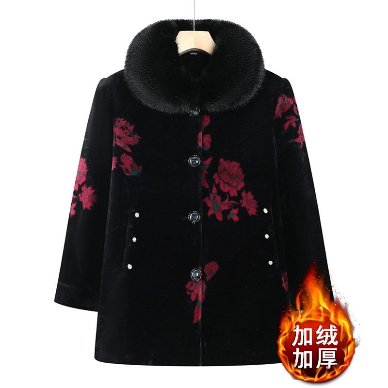 おばあさんは冬にベルベットのコートを着て、毛皮の上着を真似て、おばあさんの2024の新しい冬にベルベットの綿服を厚くした