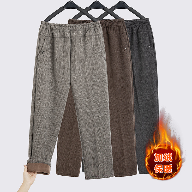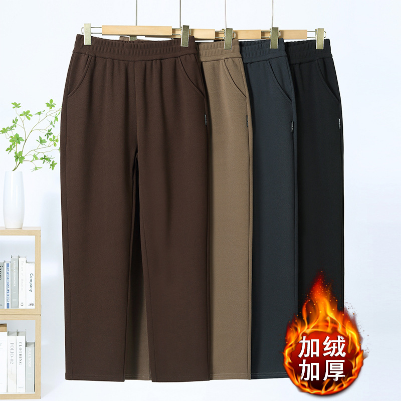 中老年人女裤妈妈加绒加厚裤子春秋款宽松直筒裤奶奶时尚休闲长裤