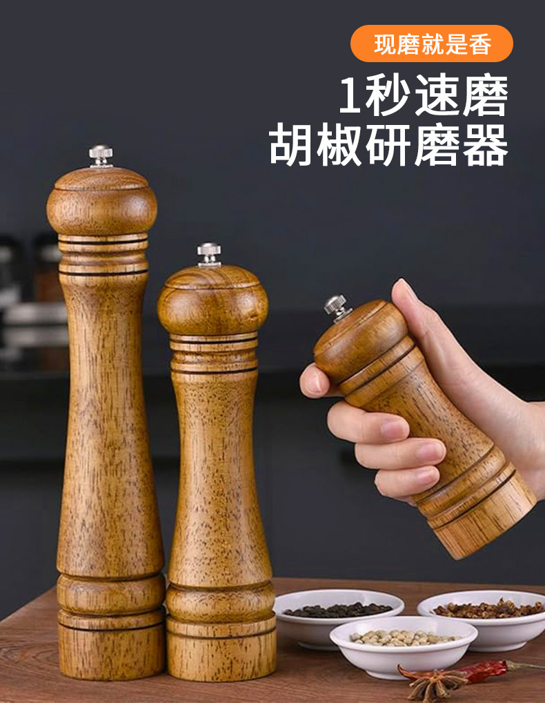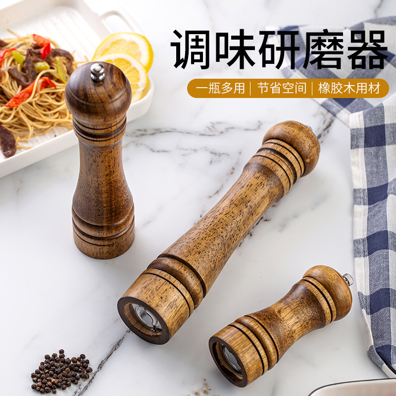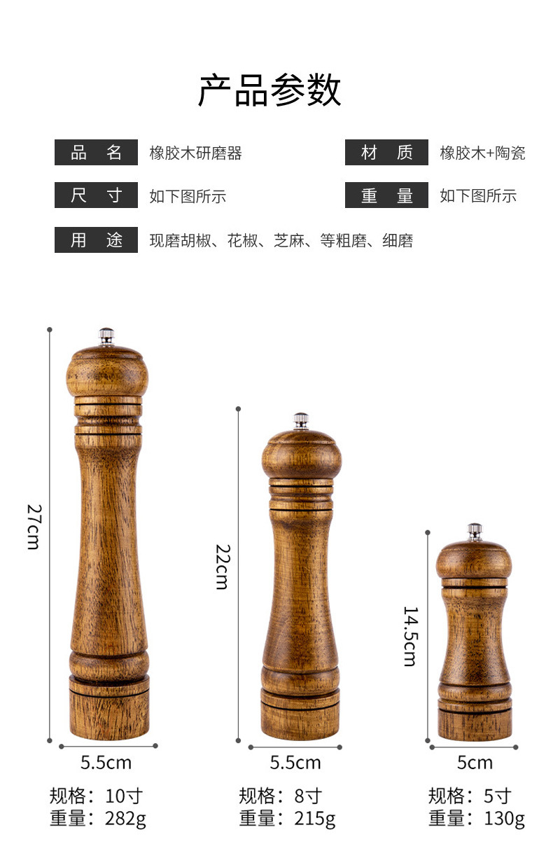 木质胡椒研磨器手动胡椒磨橡木花椒现磨5寸8寸10寸多用调料瓶