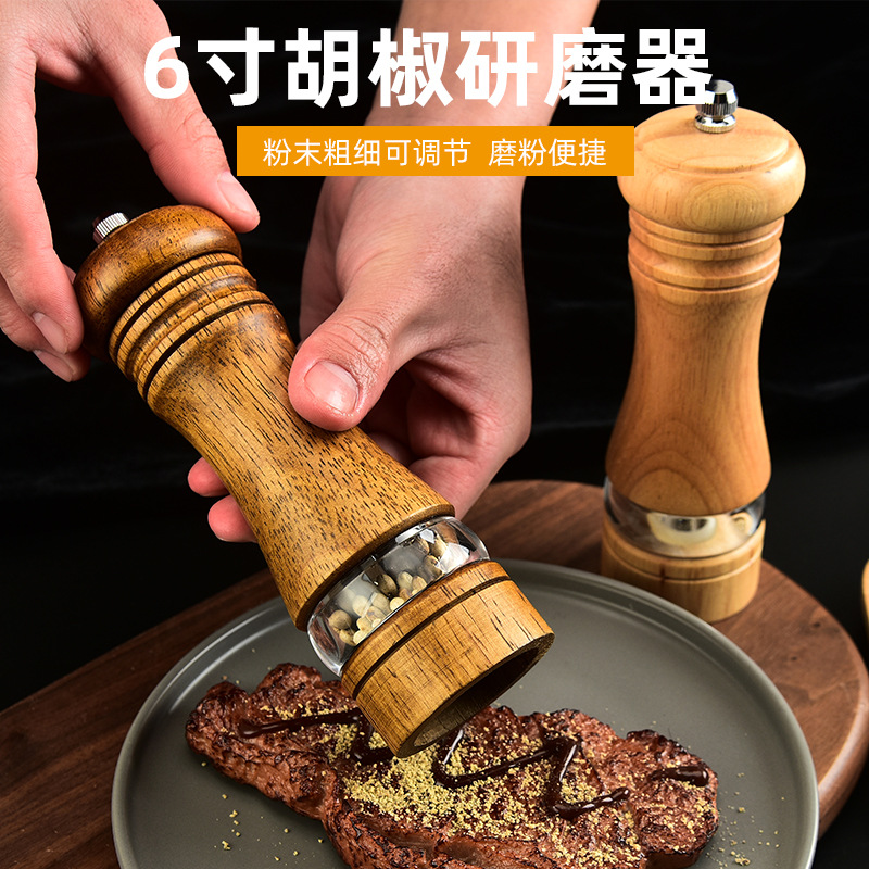 跨境套装6寸研磨器 手动胡椒磨调味罐简约款胡椒磨木质手动