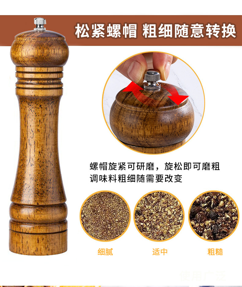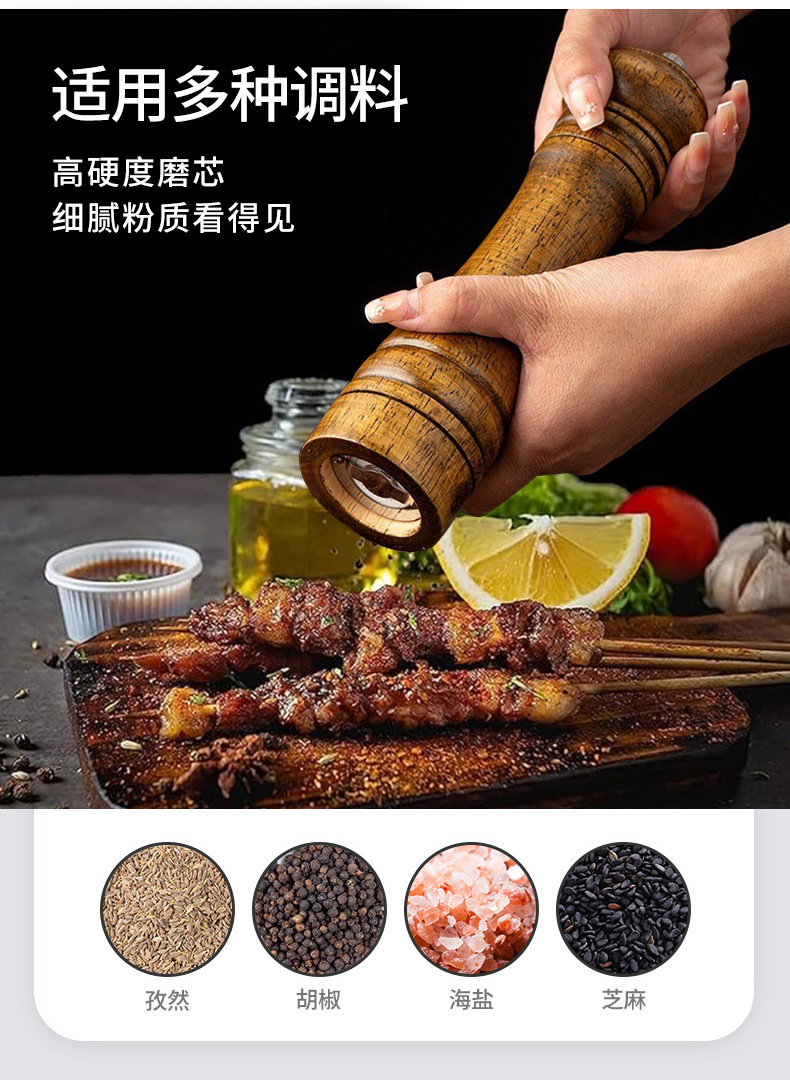 手动5寸8寸10寸研磨器胡椒研磨器橡木花椒现磨胡椒粉调味罐研磨瓶