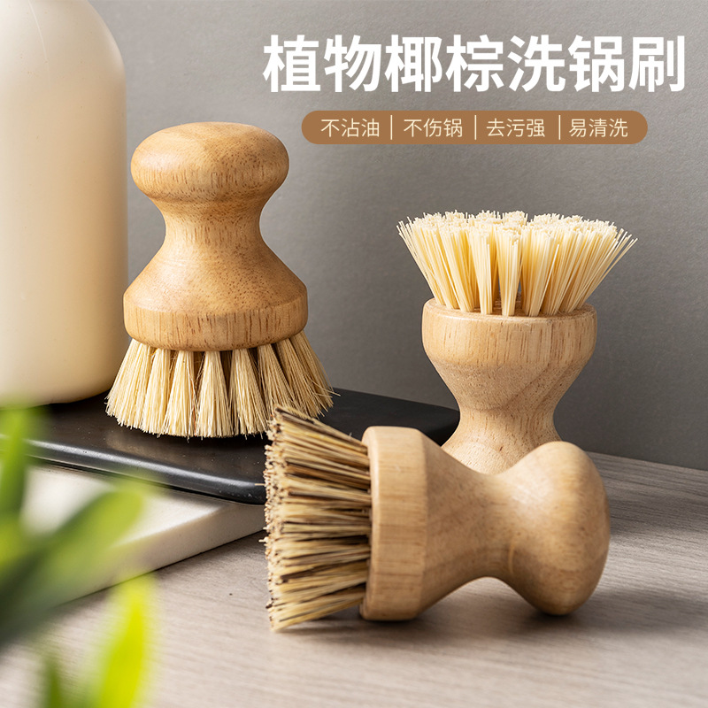 新しい無垢材の食器洗い鍋ブラシ、天然サイザル麻のボウルとプレートのブラシ、ココヤシの鍋洗い加工品、キッチンのノンスティック鍋洗浄ブラシ
