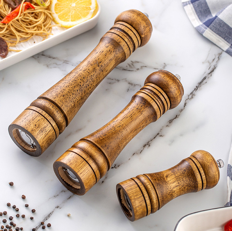 アカシアの木の手動の胡椒は調味料の瓶の黒胡椒のサンショウの調味料を研いで瓶の台所を研いで多く使うことができます。