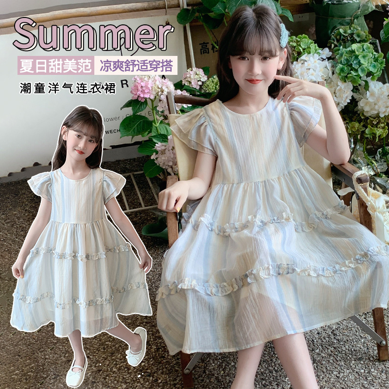 女の子ドレス夏 2025 新しい子供スタイルフライングスリーブプリンセスドレス大きな子供女の子夏薄いスカート