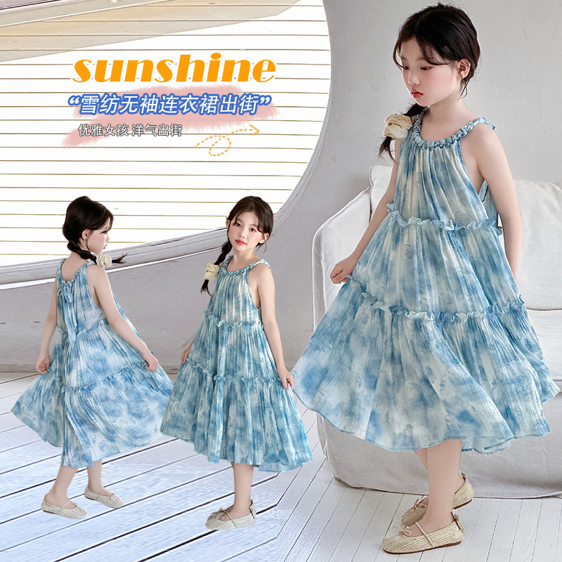 女の子の超素敵なドレス夏 2025 新しいスタイルの女の子の海辺の休暇サスペンダースカートドーパミン小さなドレス