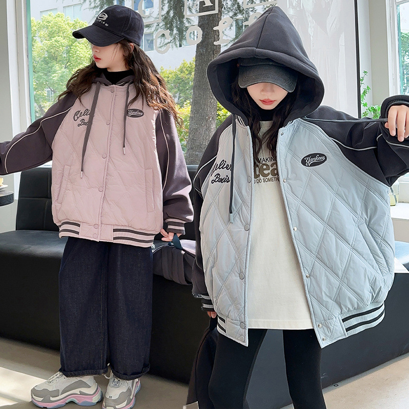 女の子用ジャケット 秋冬 2025年新作 おしゃれな子供用中綿入り野球ジャケット 女の子 大きな子供向け 厚手薄手綿服