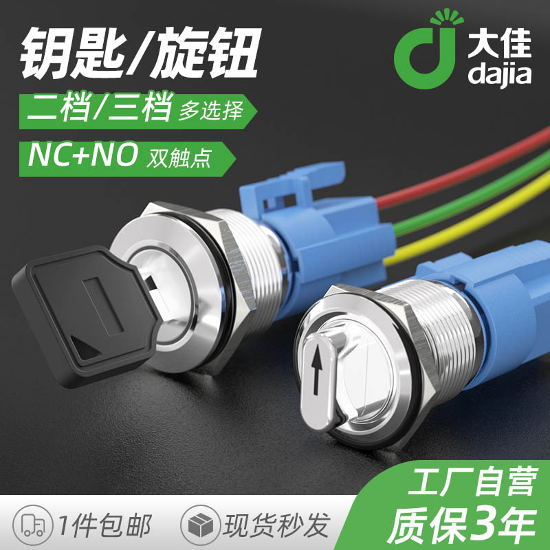 19 22mm金属选择钥匙旋转钮 两档三档多位置单控 双控24V 220V