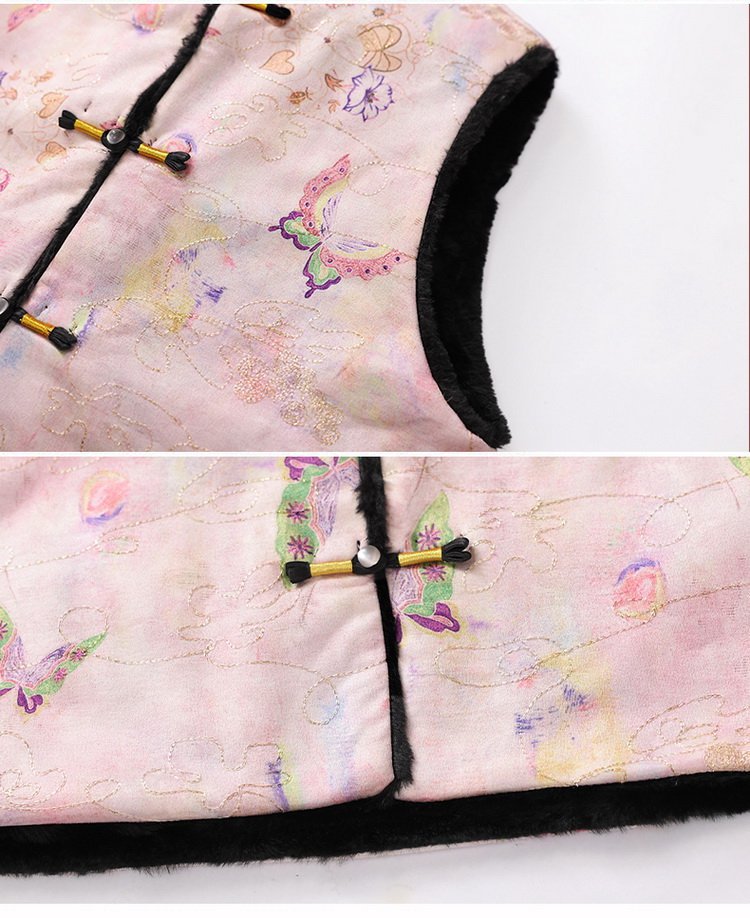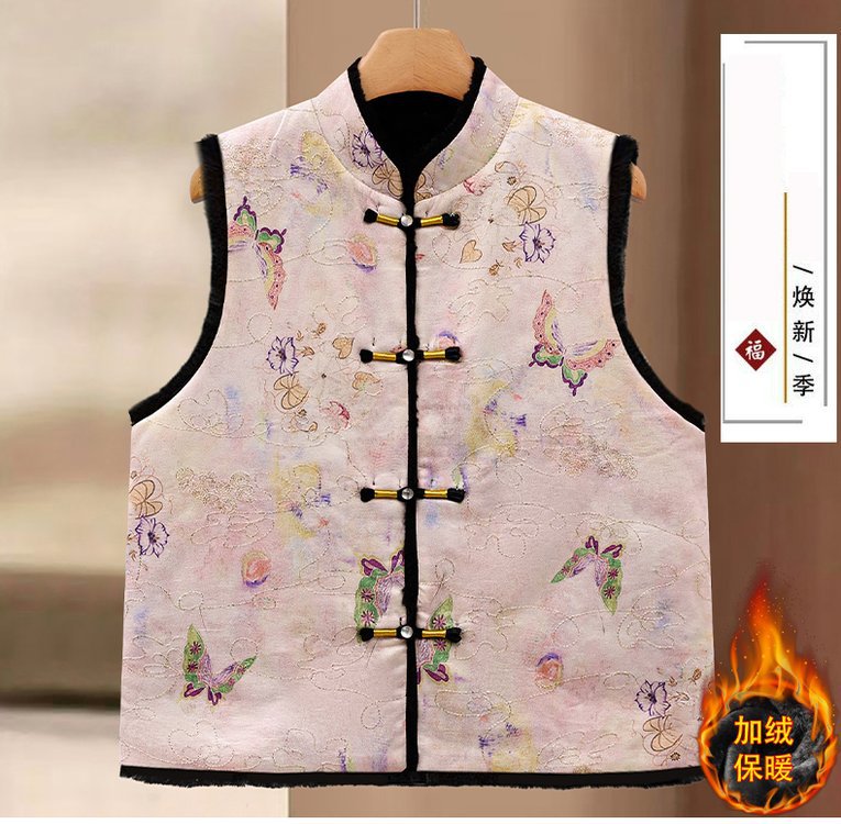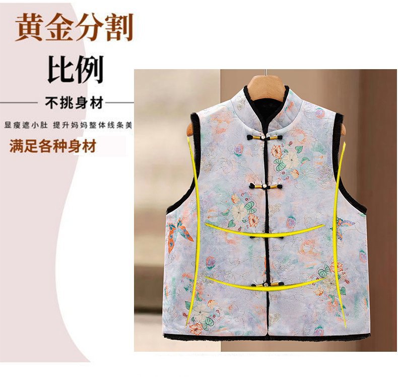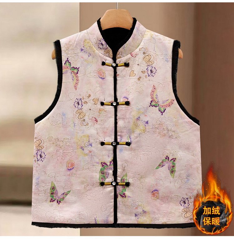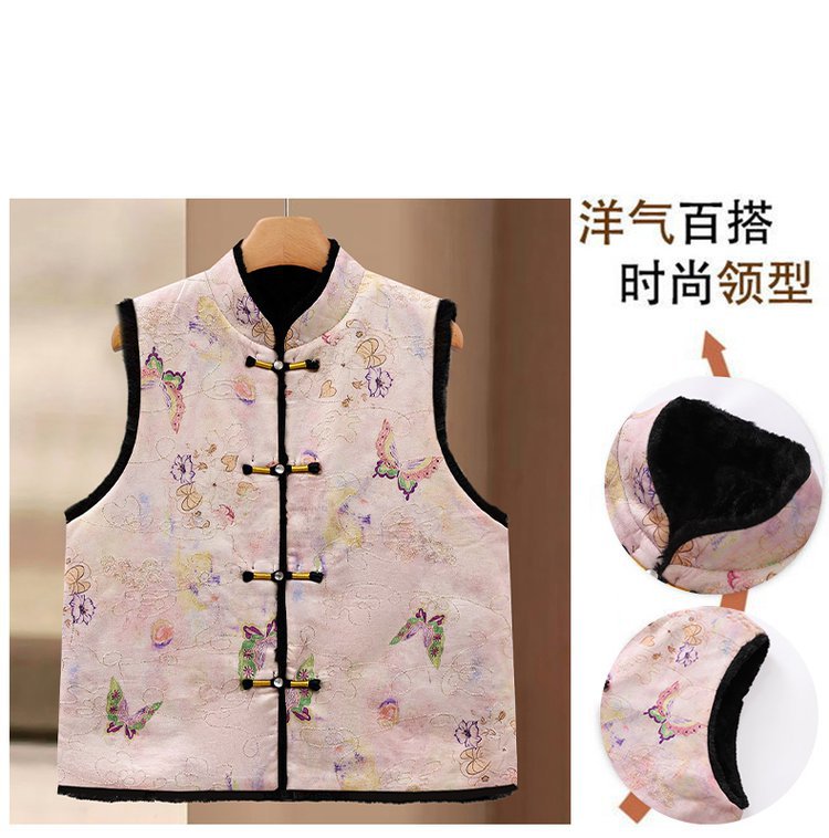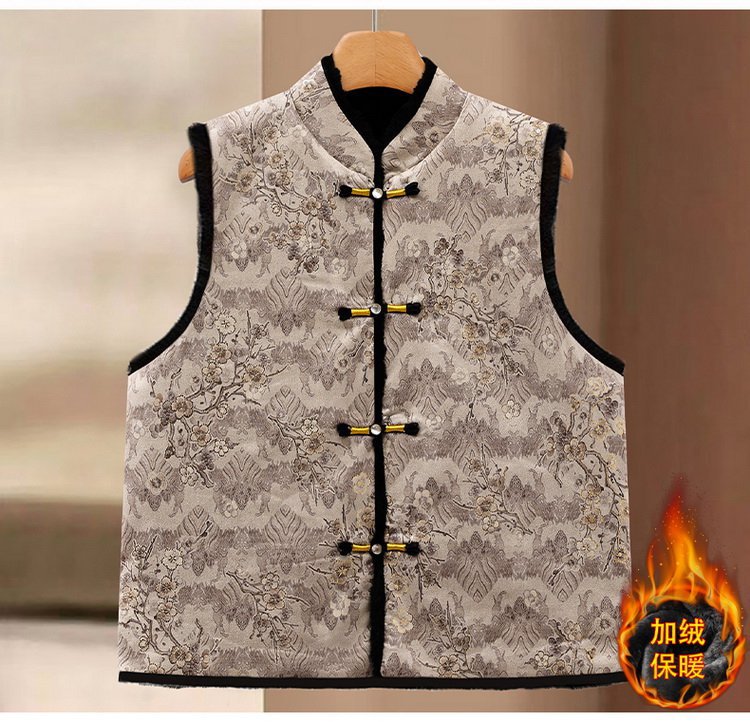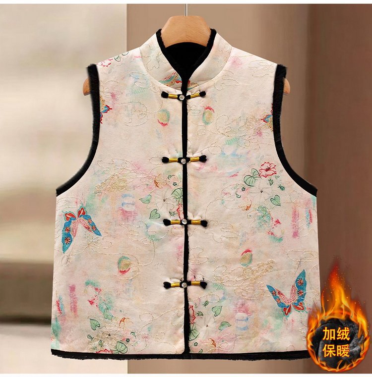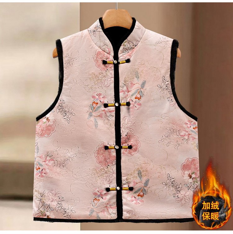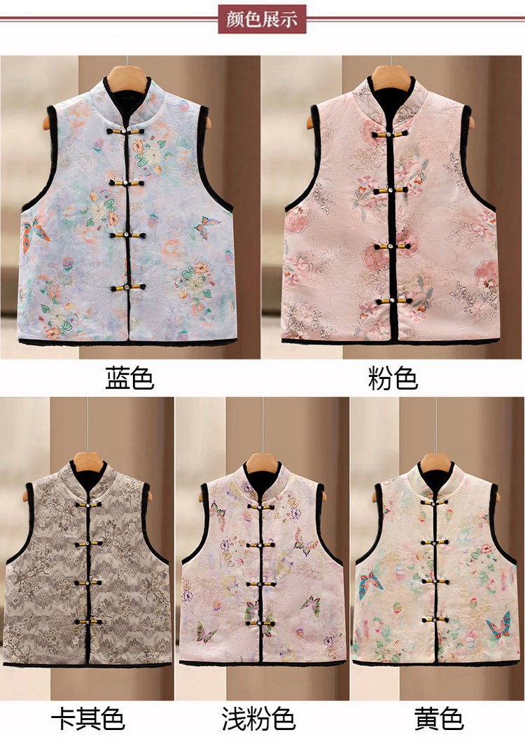 唐装马夹新中式加绒保暖马甲女士国风款印花盘扣秋冬装双面穿坎肩