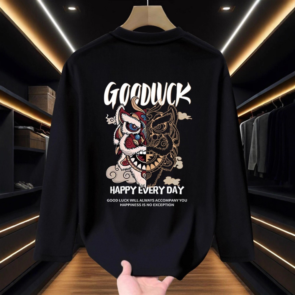 重磅纯棉长袖t恤男生秋季潮牌大码打底衫动漫印花内搭宽松打底衫