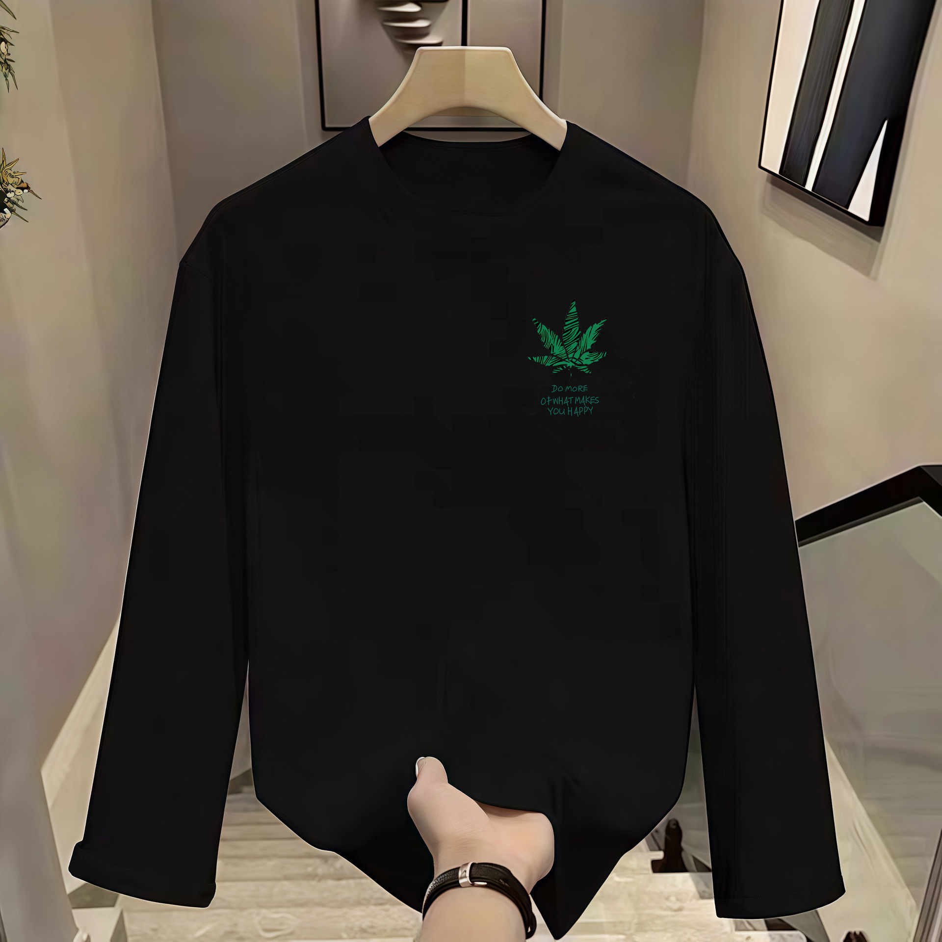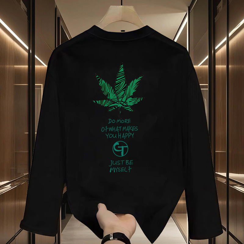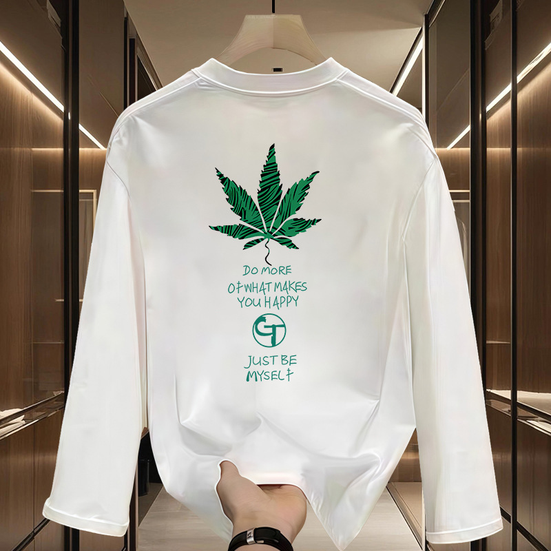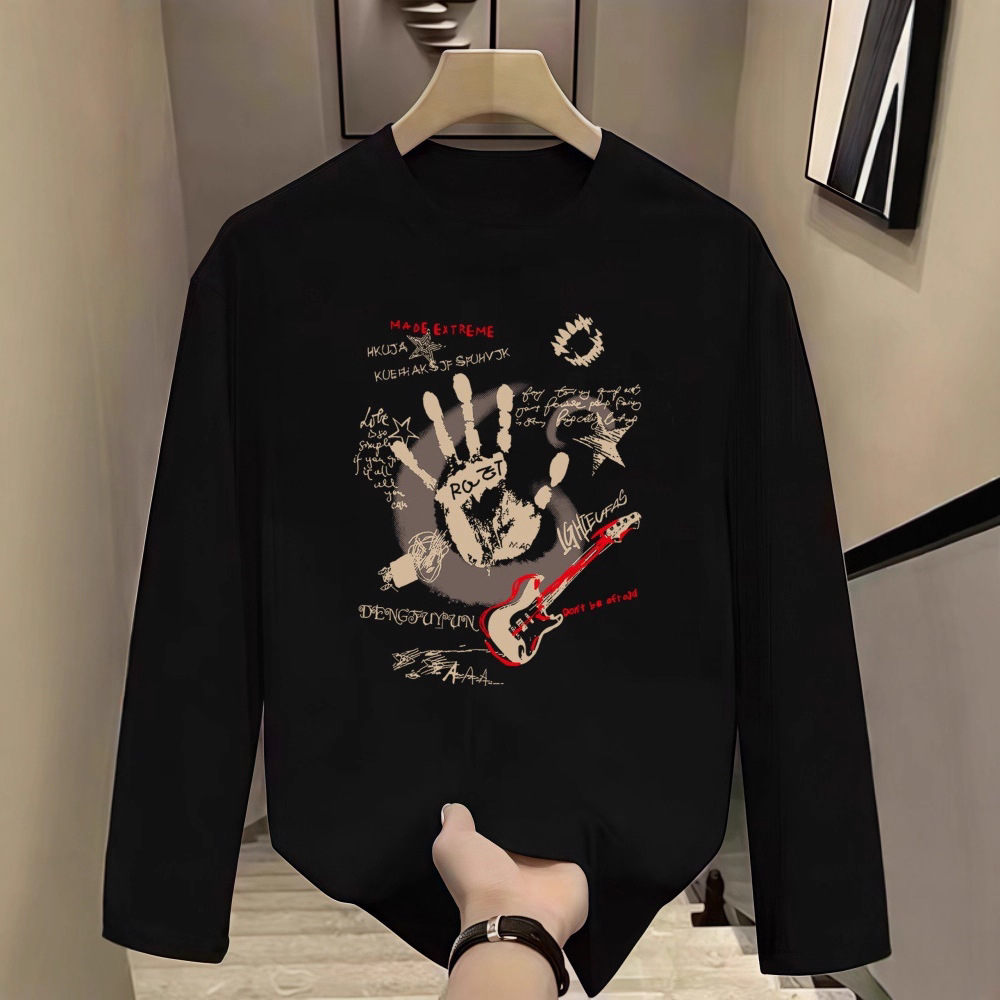 纯棉t恤男士春秋季印花宽松休闲ins潮牌情侣装内搭打底衫长袖上衣