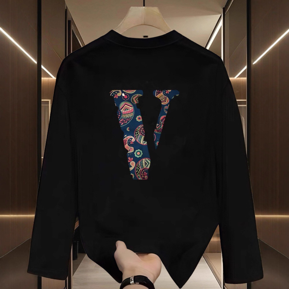 重磅纯棉美式春秋印花圆领新款男士长袖T恤高街时尚宽松百搭上衣