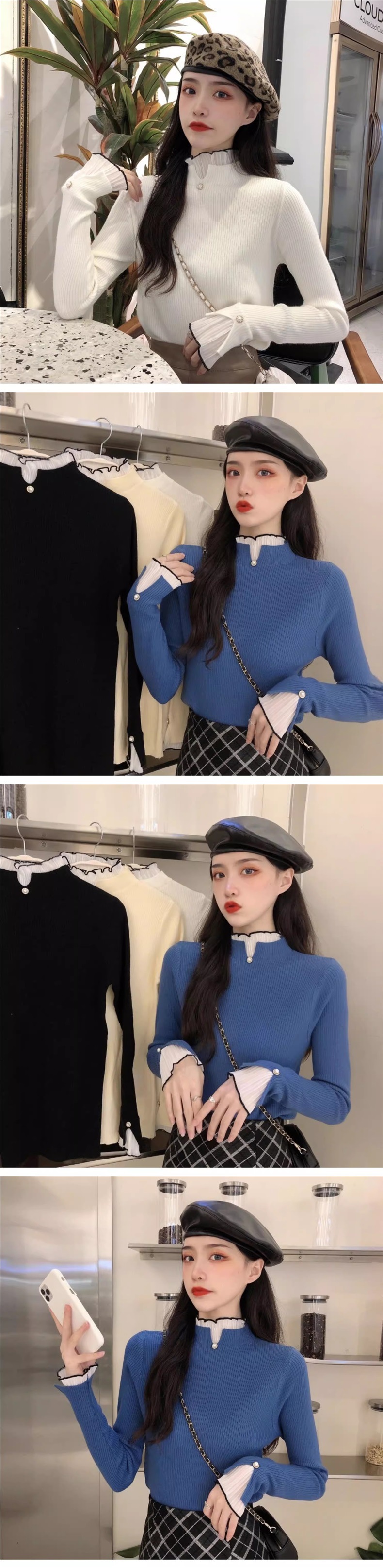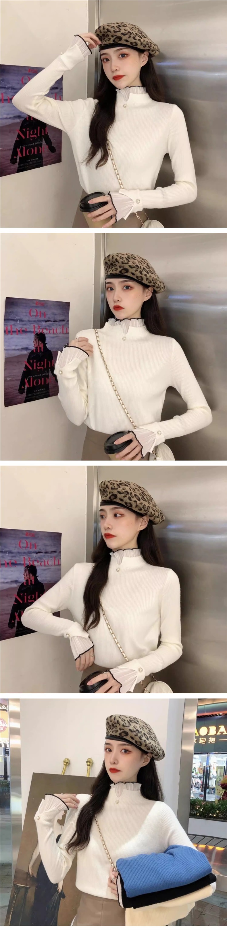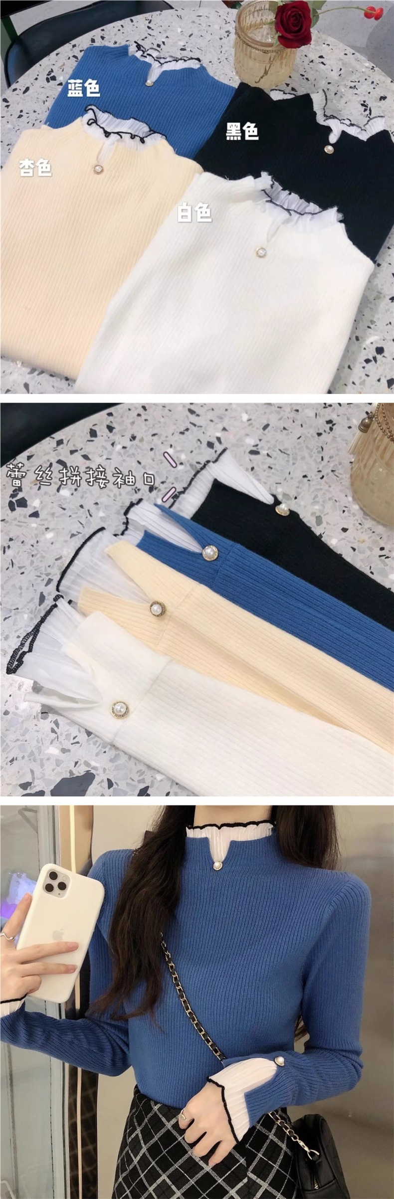 半高领针织打底衫女秋冬内搭蕾丝白色高级感毛衣今年流行别致上衣