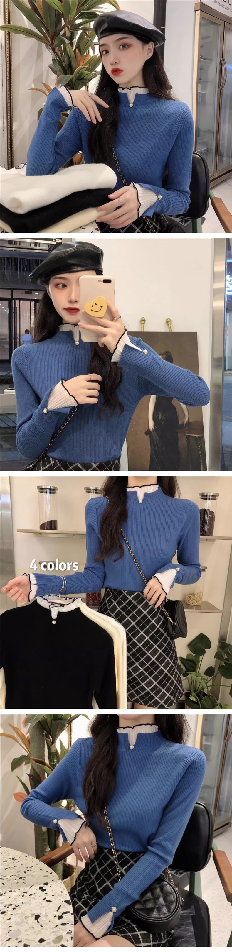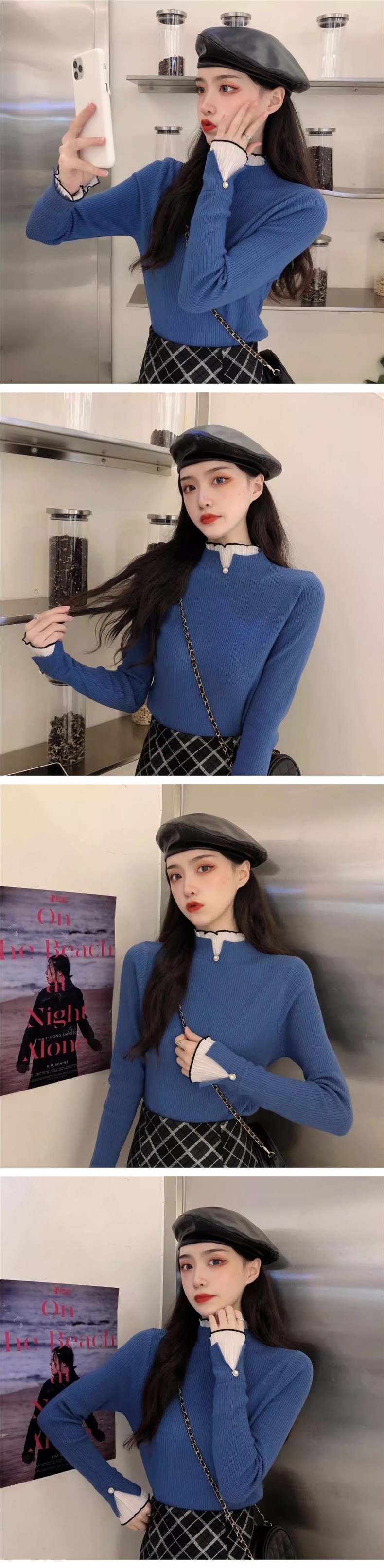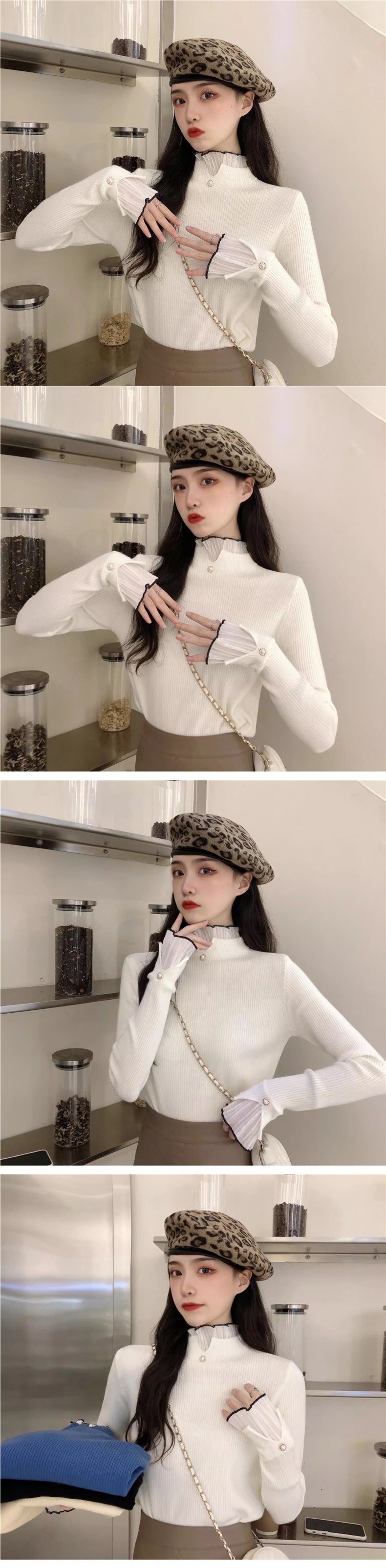 半高领针织打底衫女秋冬内搭蕾丝白色高级感毛衣今年流行别致上衣