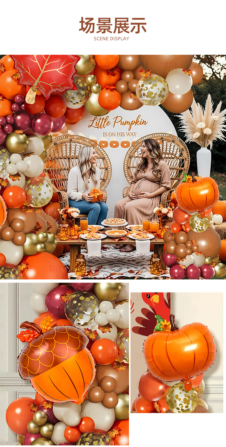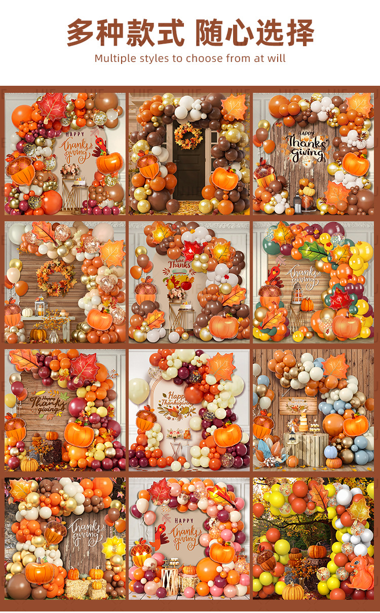 跨境感恩节橘色气球链秋季主题派对装饰生日结婚场景布置气球拱门