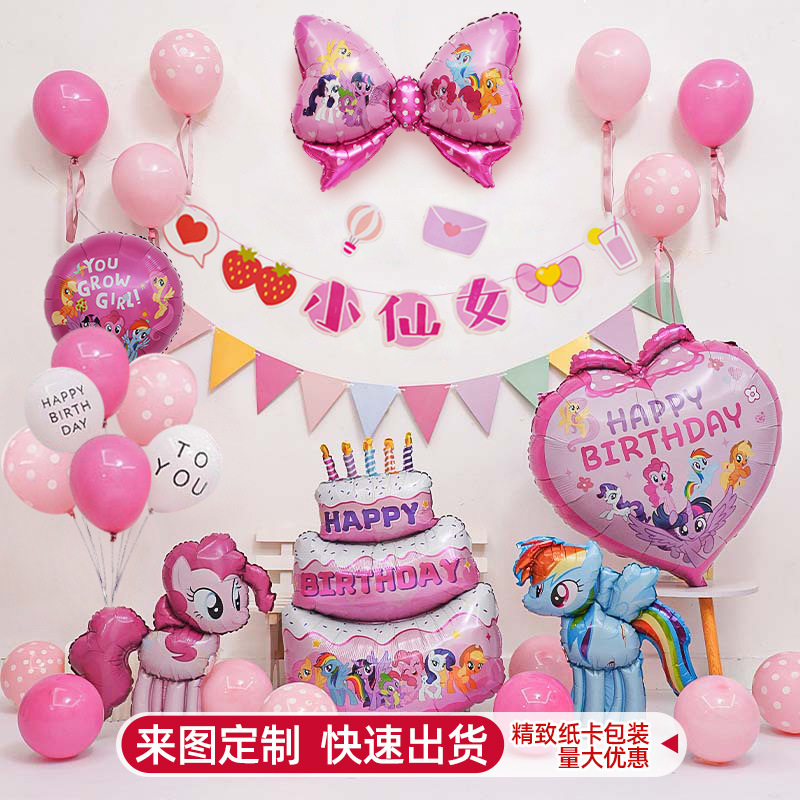 卡通独角兽小马宝莉气球套装女孩宝宝生日聚会派对布置拍照背景墙