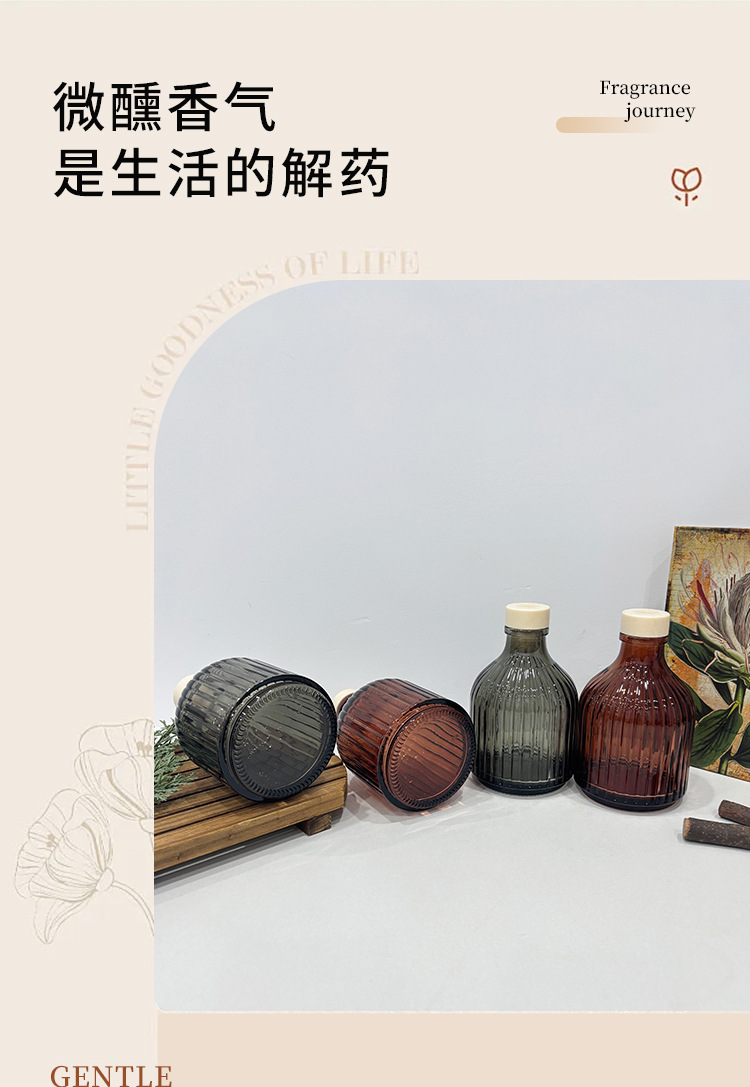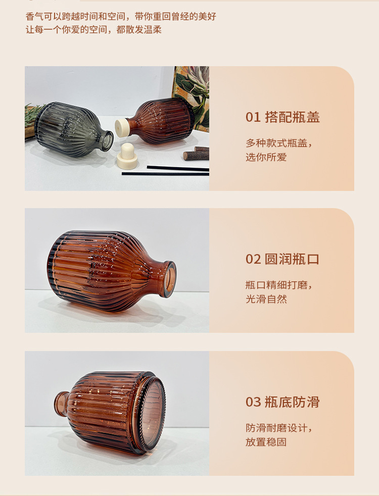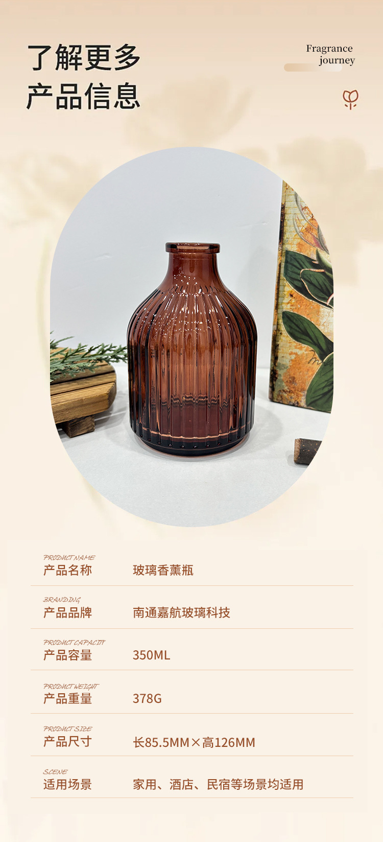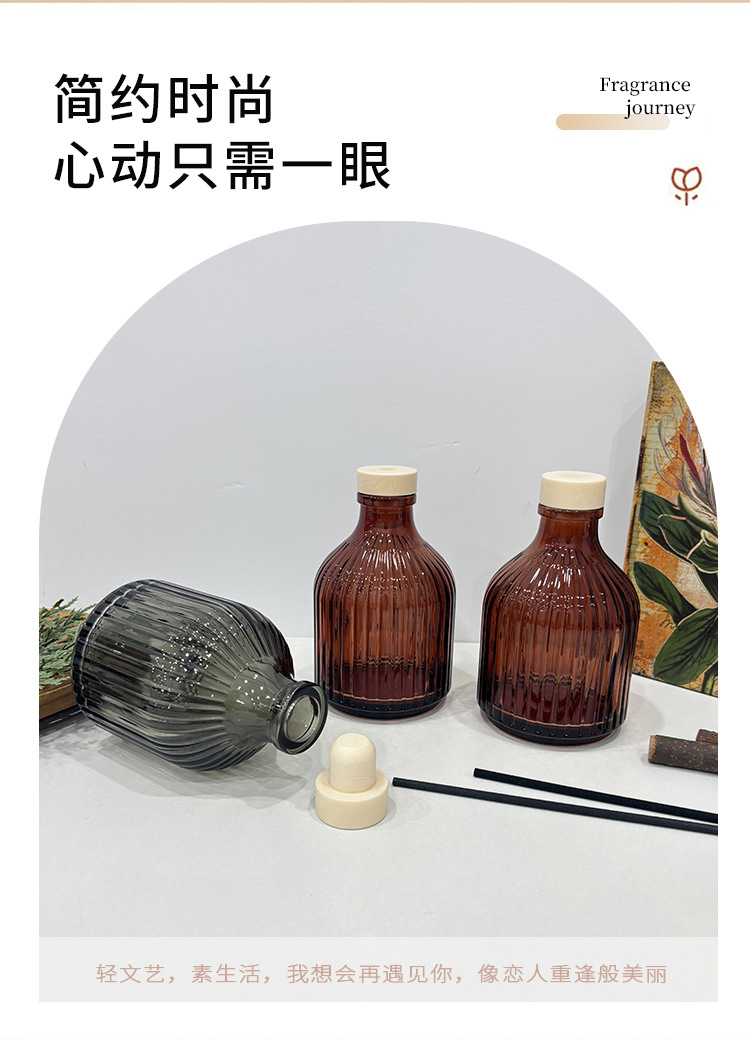 厂家新品批发350ML竖纹棕色灰色卡口圆弧 透明香薰空瓶无火藤条精