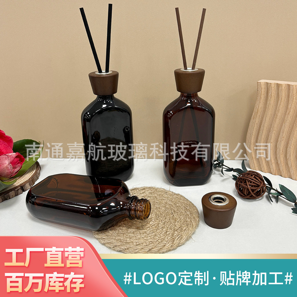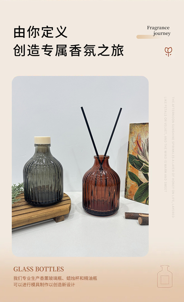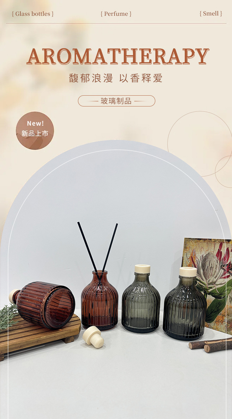 厂家新品批发350ML竖纹棕色灰色卡口圆弧 透明香薰空瓶无火藤条精