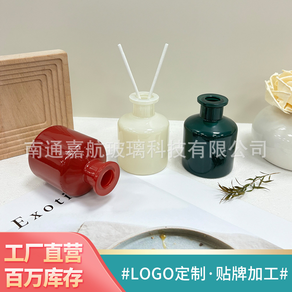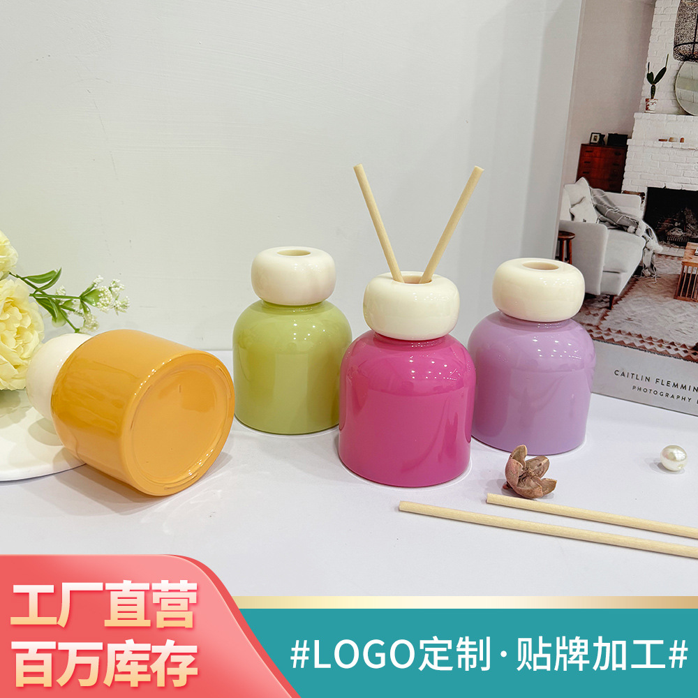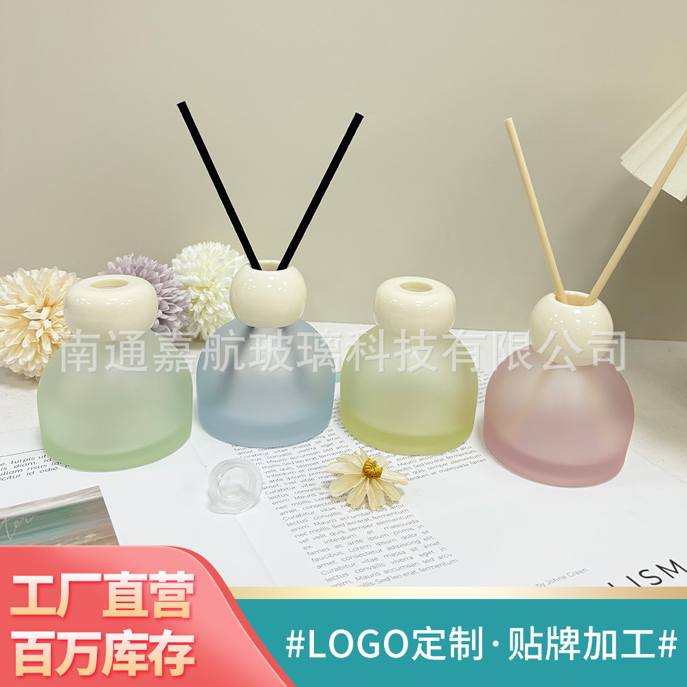 批发100ML圆型马卡龙色无火香薰玻璃瓶家用香薰瓶藤条干花挥发瓶