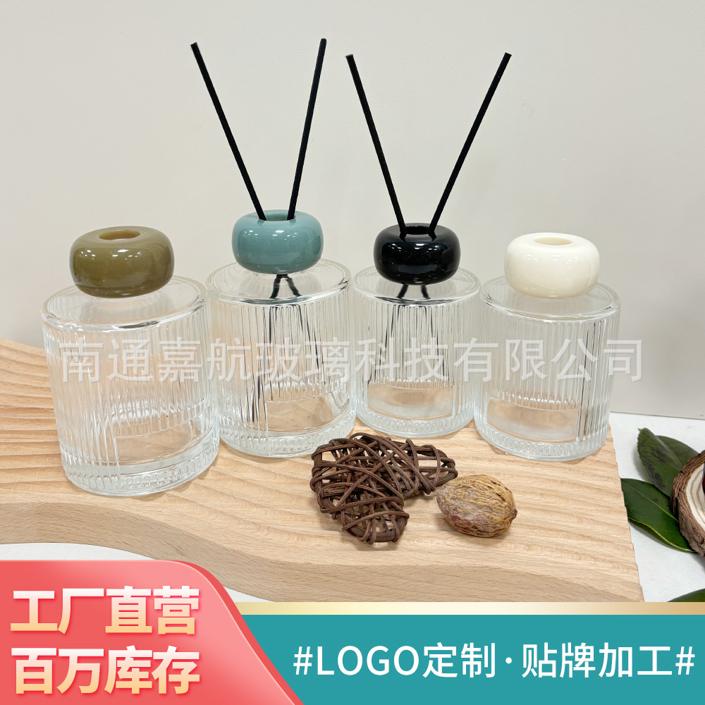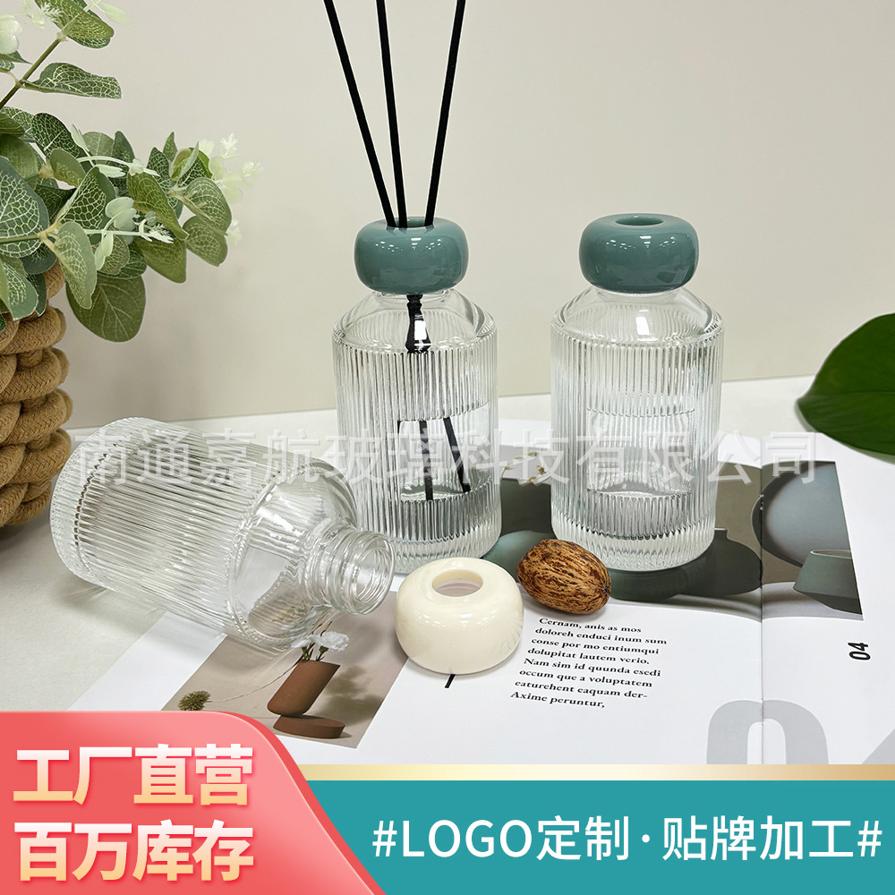 卸売り120ml 200ml円形縦縞香薫ガラス瓶無火香薫藤条揮発瓶室内置物