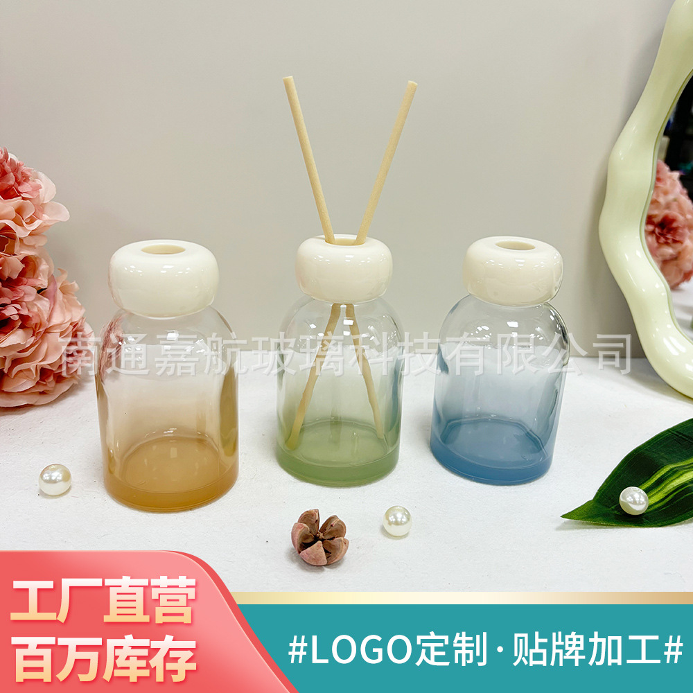 卸売り100MLグラデーションガラス瓶円形無火香薫瓶ファッション家庭藤条揮発拡香空瓶