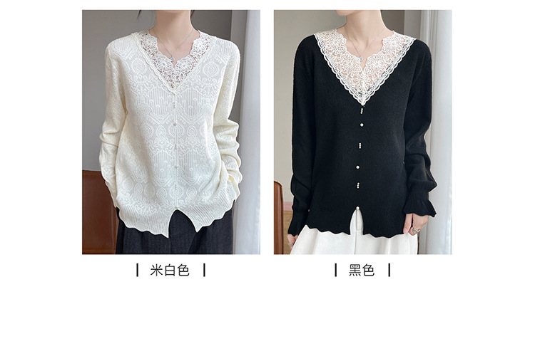 濮院産上質ウールVネックレースカーディガンセーター、2025秋冬、裾が開いたニット婦人服