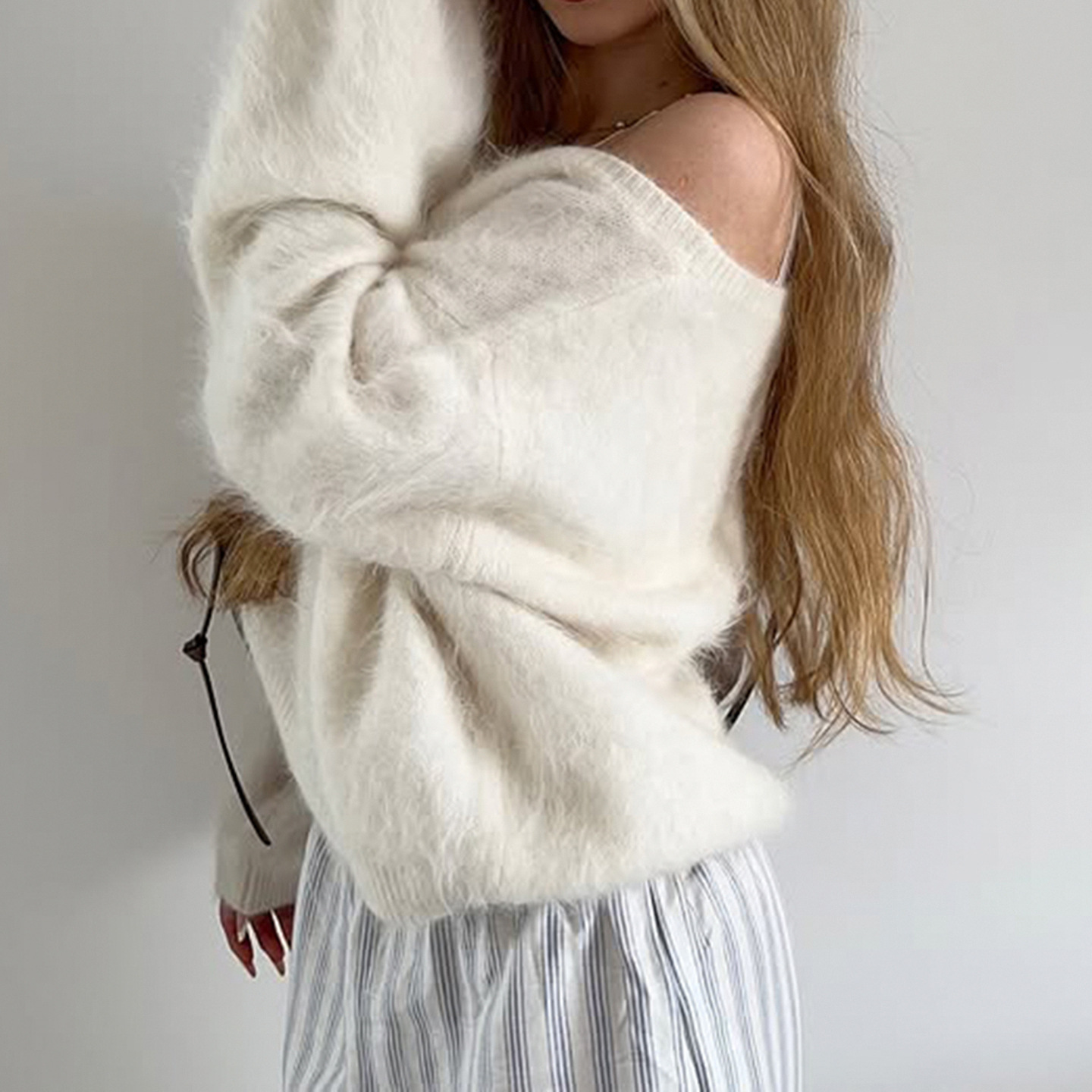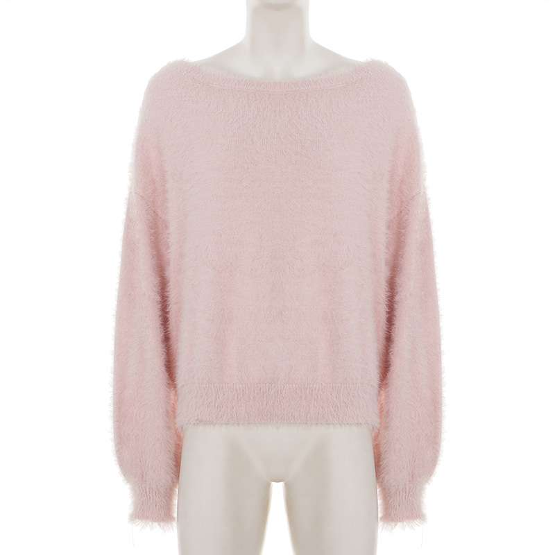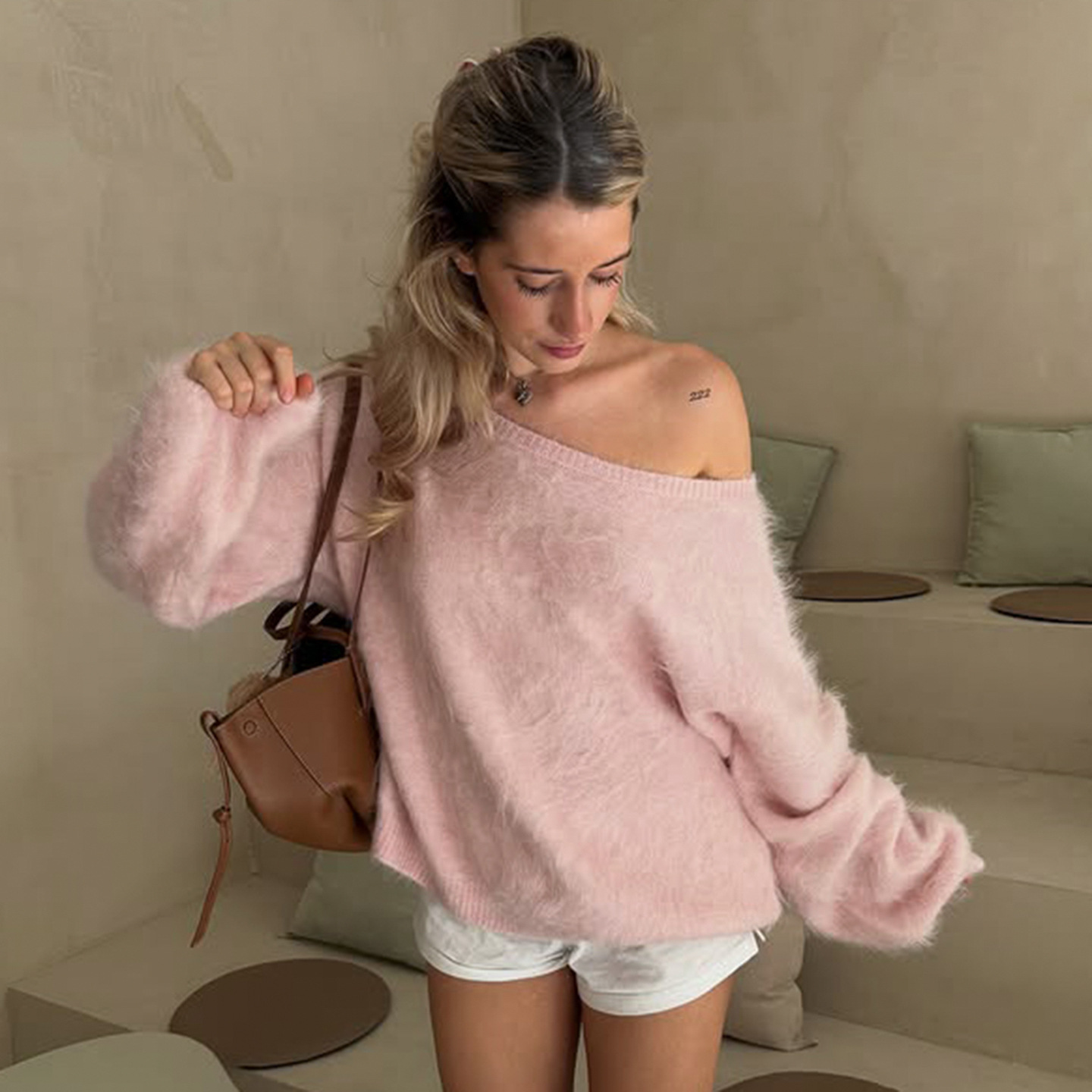 美式休闲纯欲风露肩慵懒宽松甜美毛衣日常减龄百搭简约辣妹上衣女