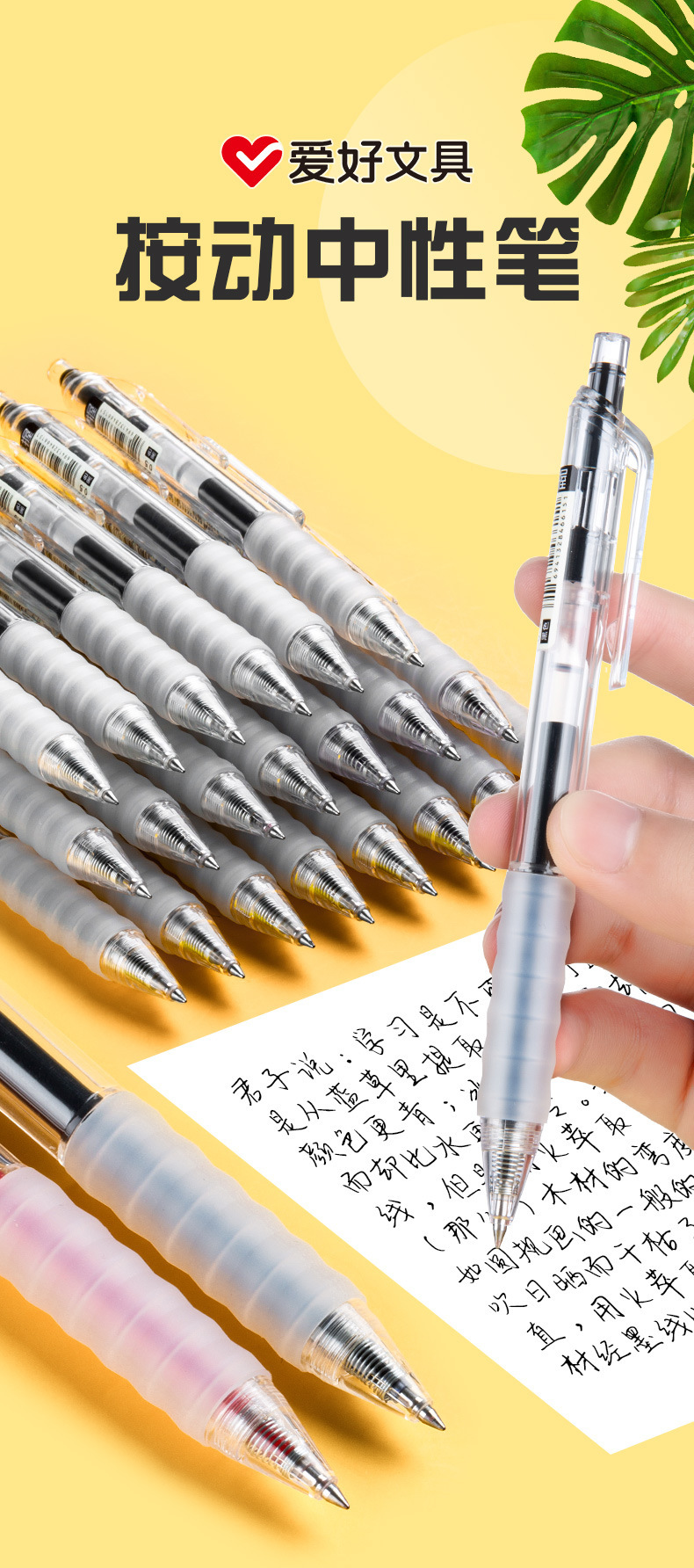 爱好GP270享握按动中性笔中小学生大容量考试水笔商务办公签字笔