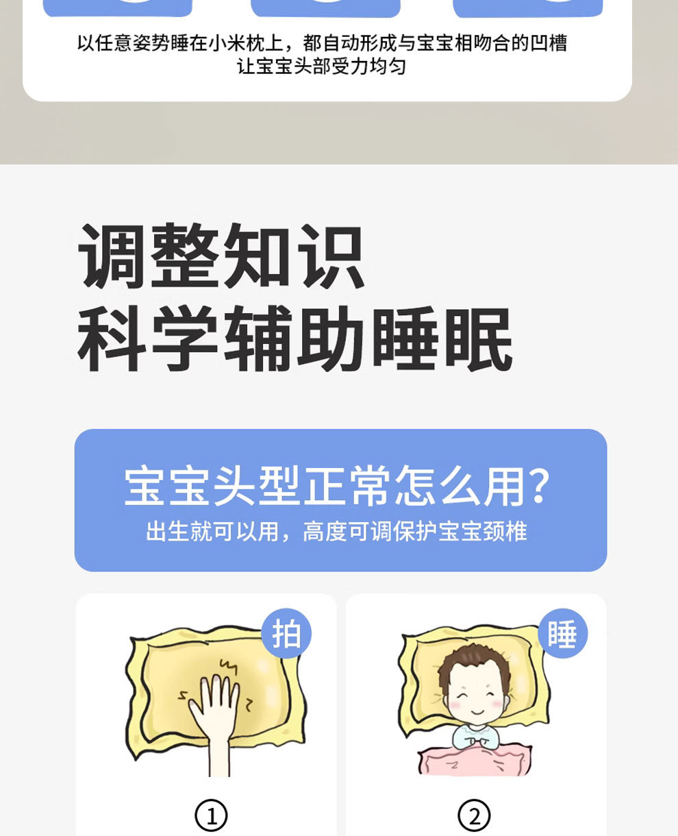 小米枕头婴儿定型枕宝宝0到6个月云片枕睡圆头新生幼儿纠正头型