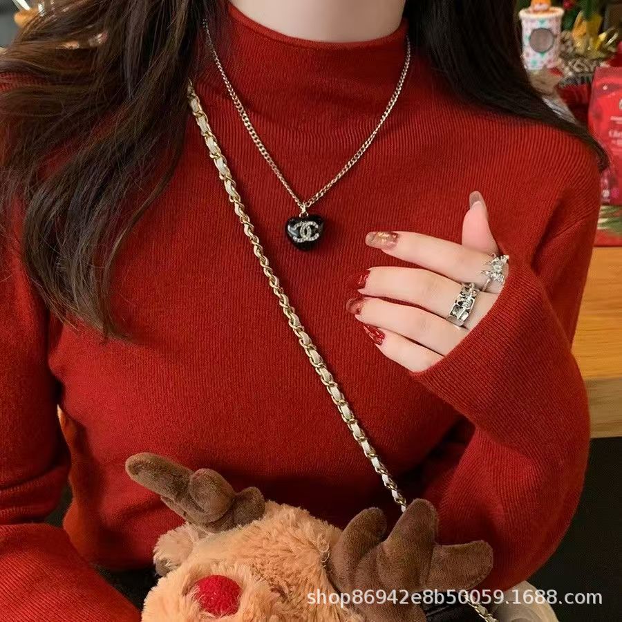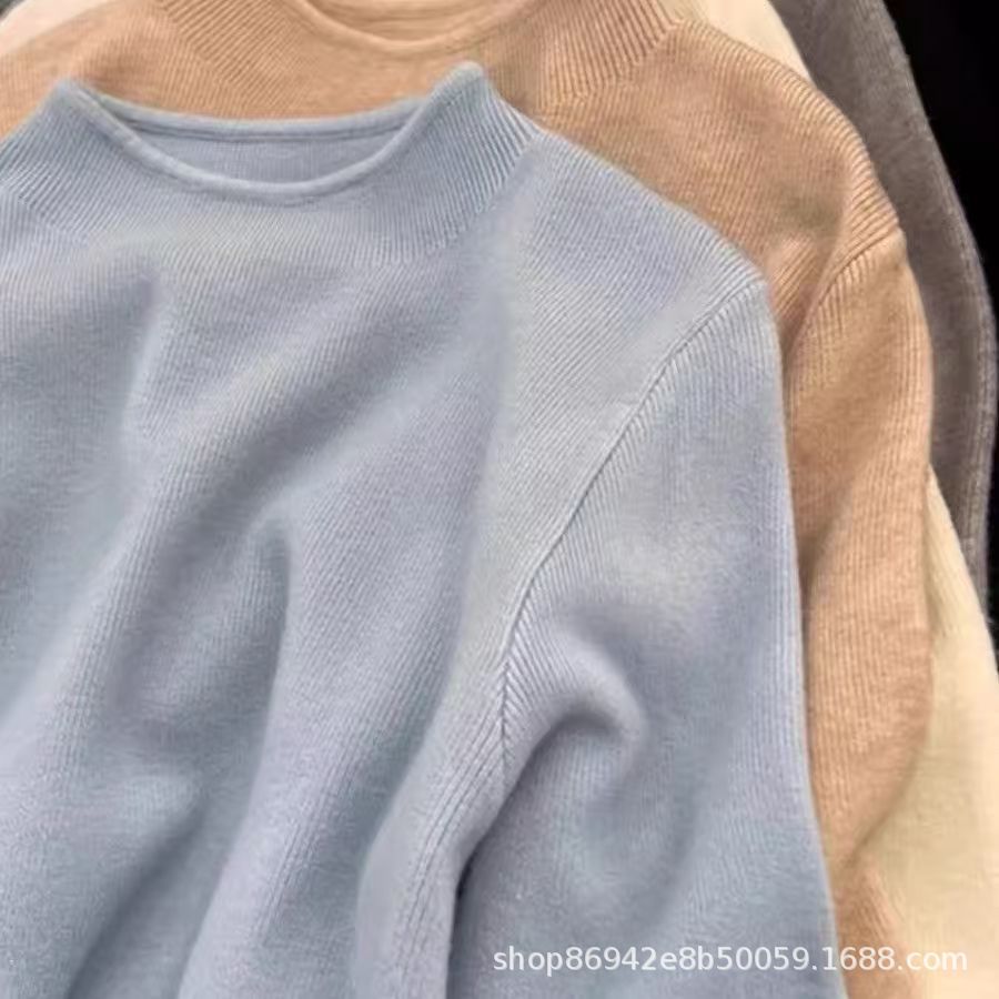 2025年秋冬季软糯立领宽松显瘦针织上衣女秋冬新款打底衫女装上衣