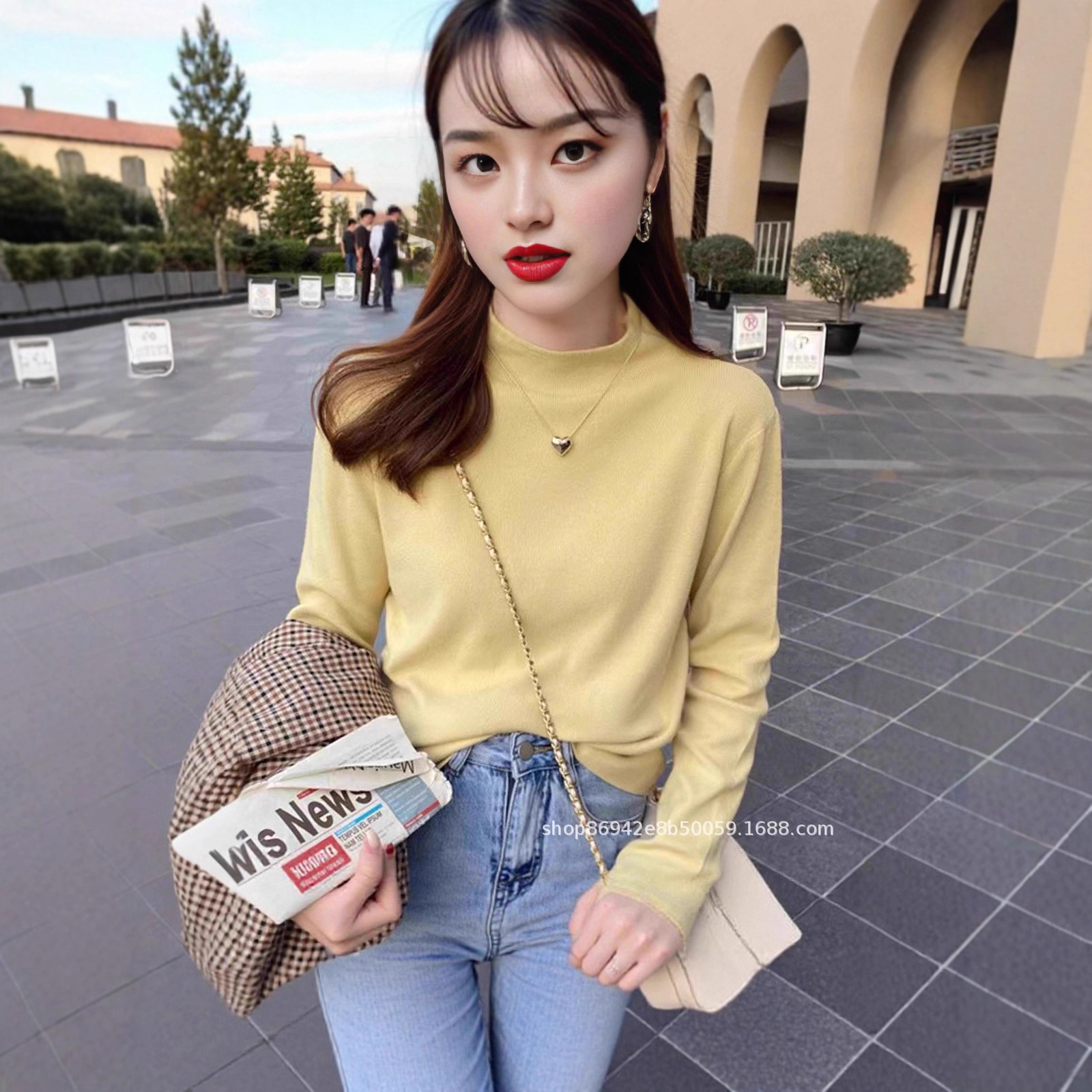 半高襟のセーターは底を打ちます。秋冬の修身はやせています。