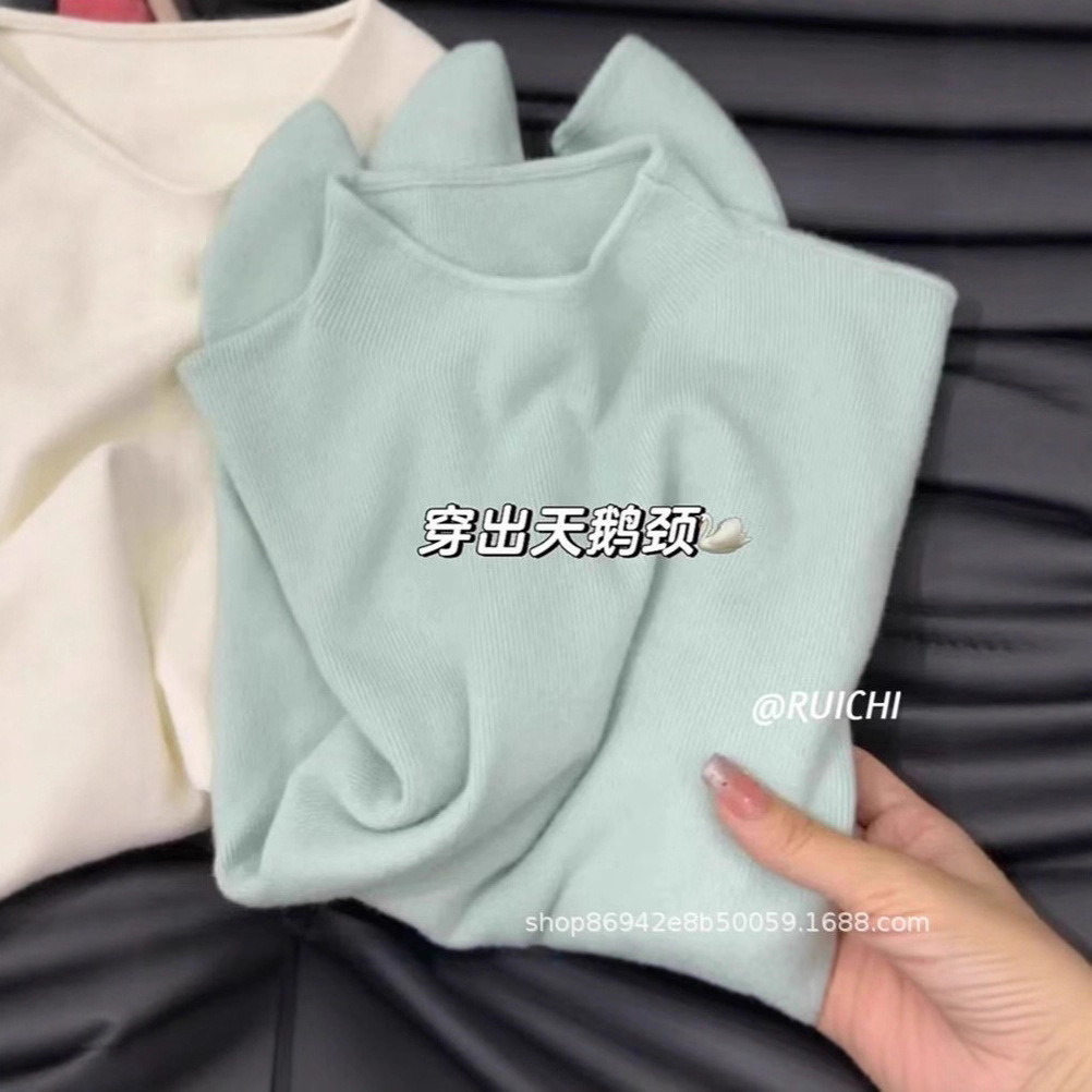 奶呼呼软糯时尚针织打底衫修身保暖白色毛衣内搭秋冬新款百搭上衣