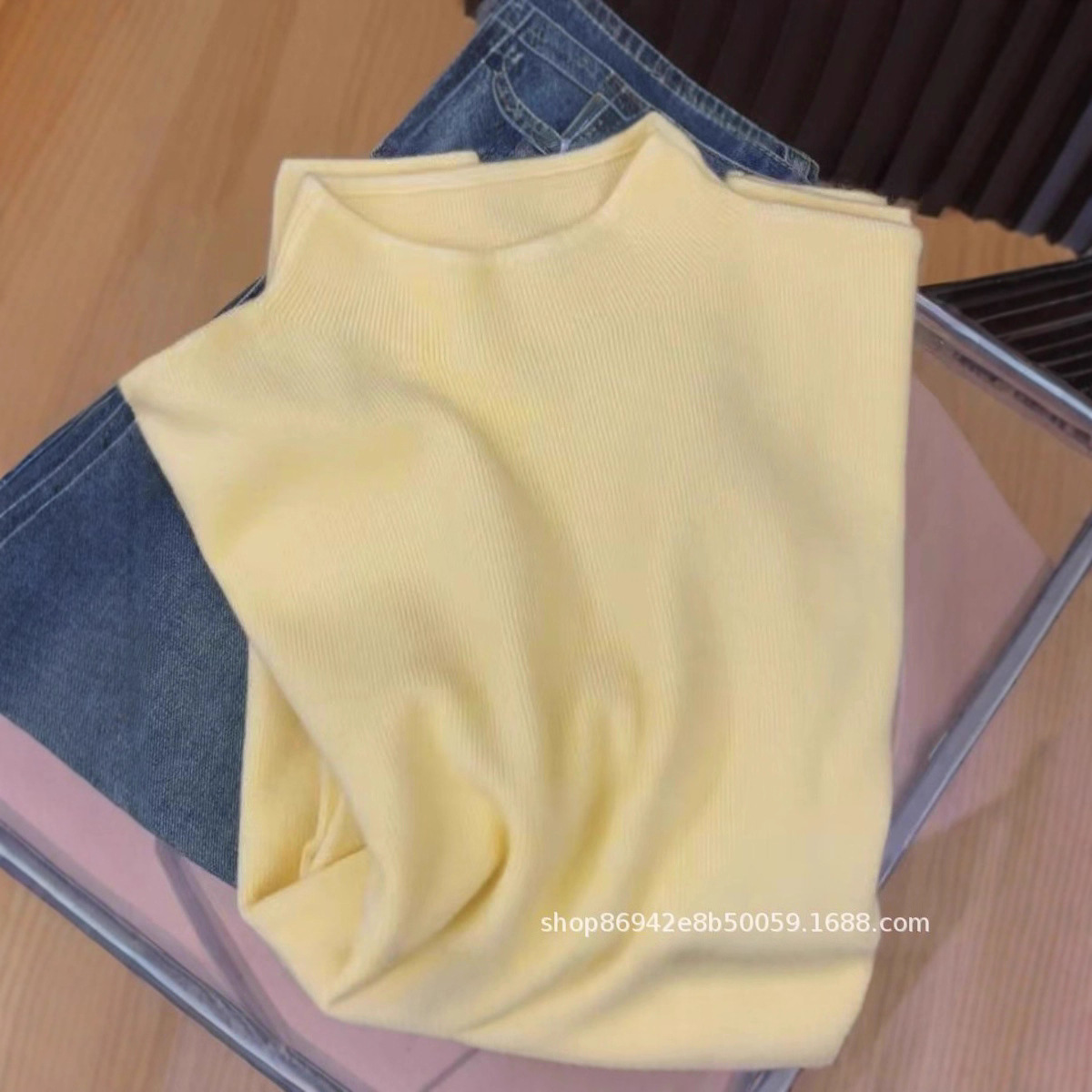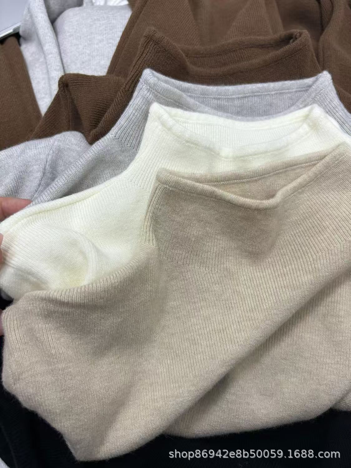 秋冬の新型の底のシャツの中にゆったりとした薄いニットの上着の長袖の柔らかいモチモチとした半高襟のセーターを掛けます。
