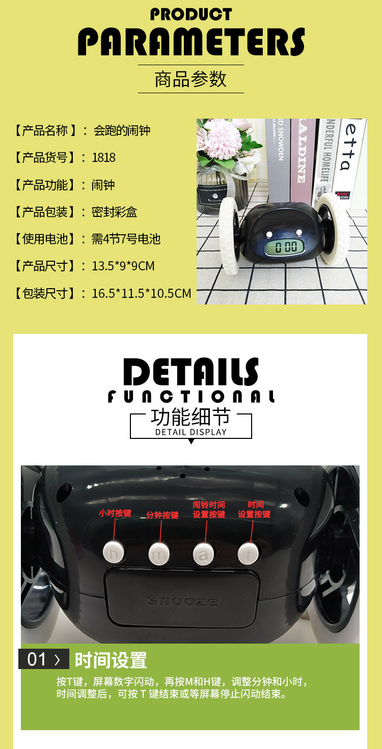 懒人闹钟会跑的闹钟逃跑搞怪闹钟儿童学生贪睡移动轮子礼品钟跨境