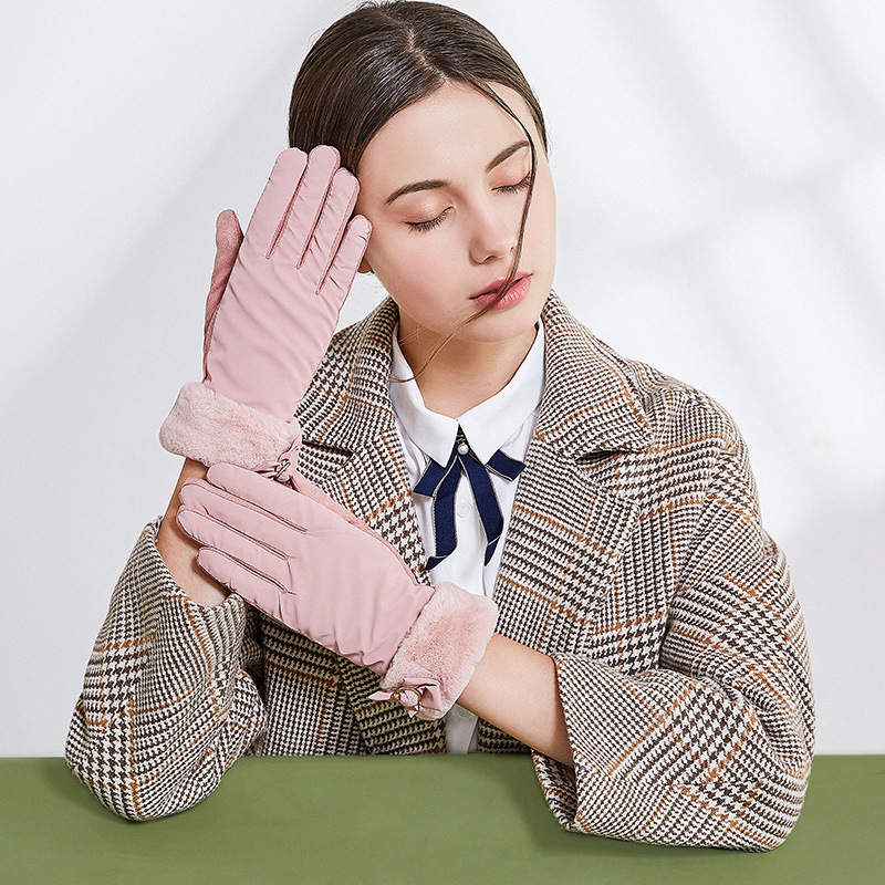 秋冬手袋の女性とベルベットの薄いタイプの屋外で電車に乗って防風防寒タッチパネルの冬保温手袋を運転する