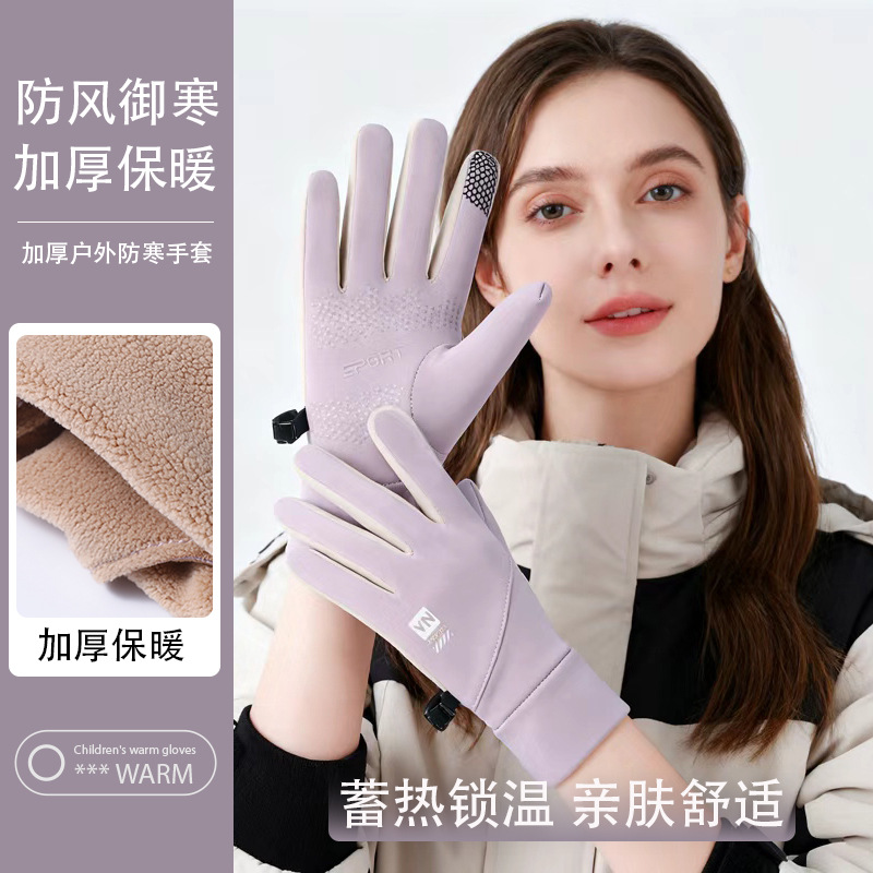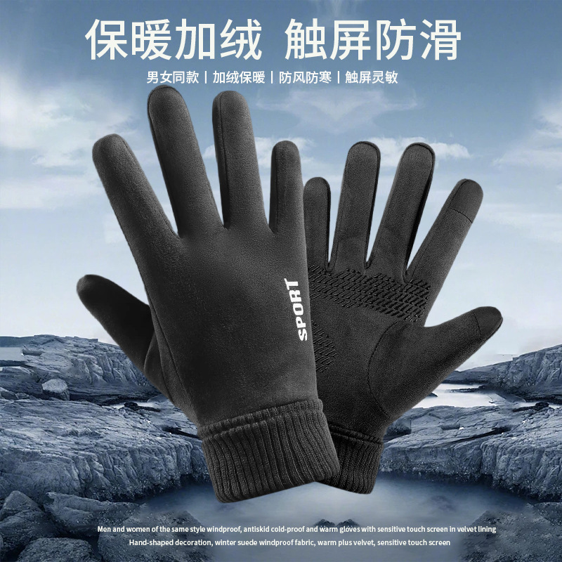 保暖手套女秋冬触屏加厚户外骑行开车徳绒防风运动手套防冻男女款
