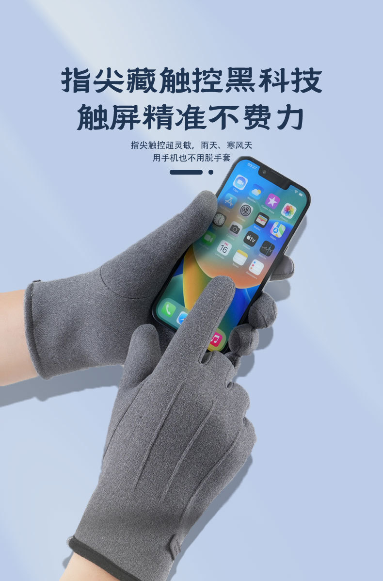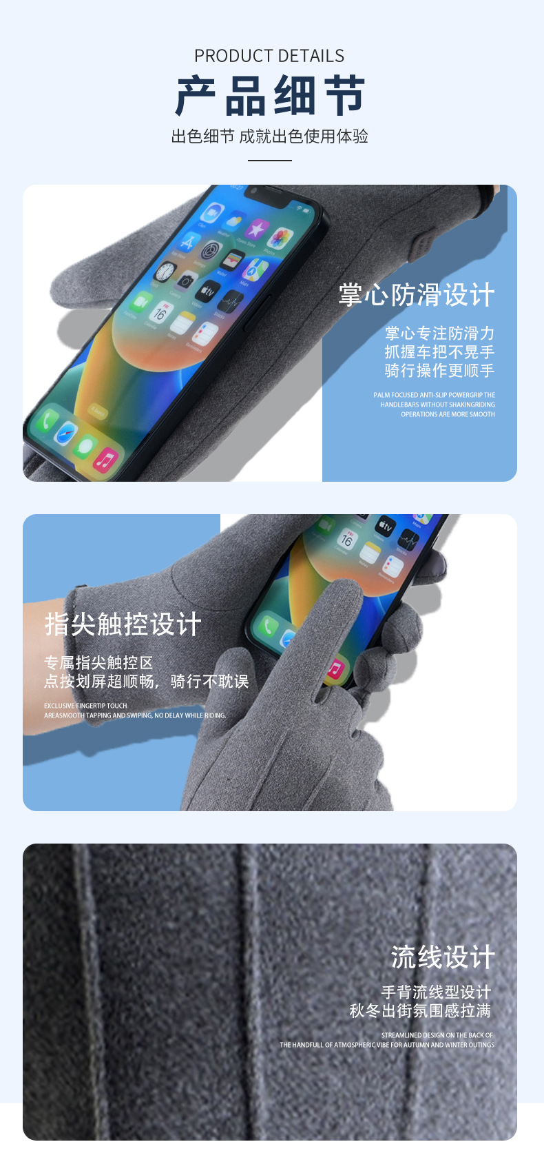 スエード手袋男女カップル秋冬綿保温ベルベット電動バイク屋外自転車防寒