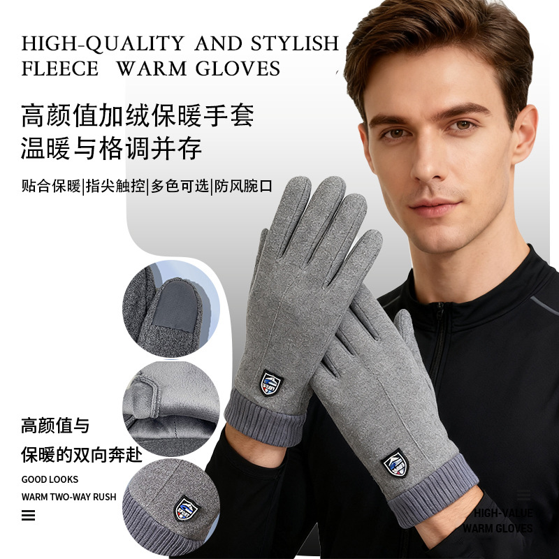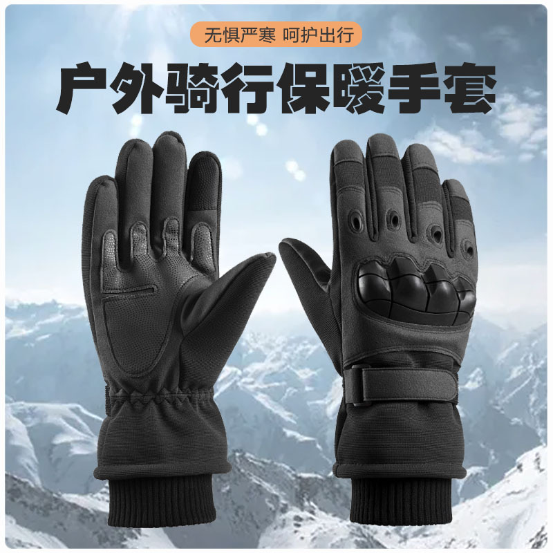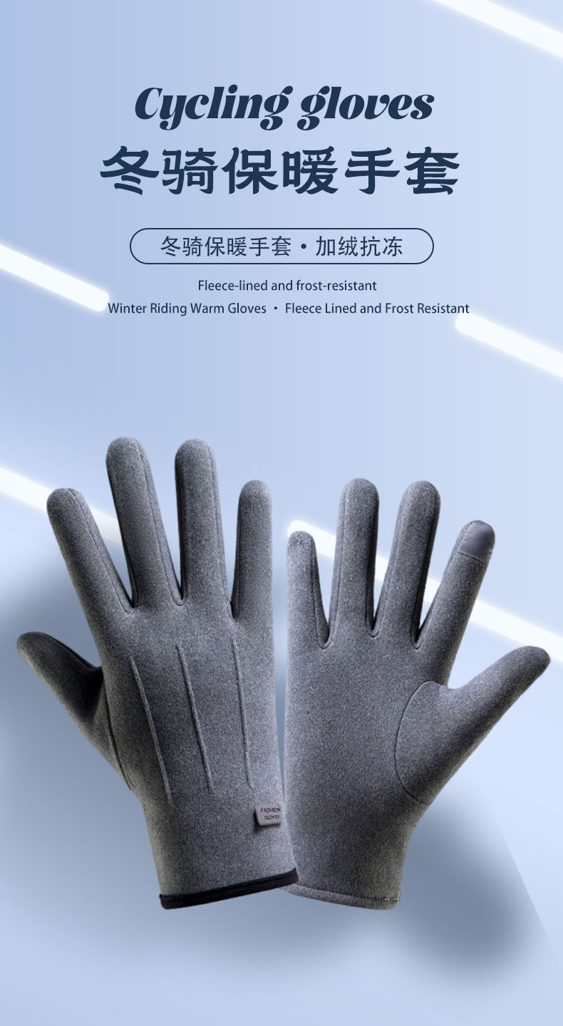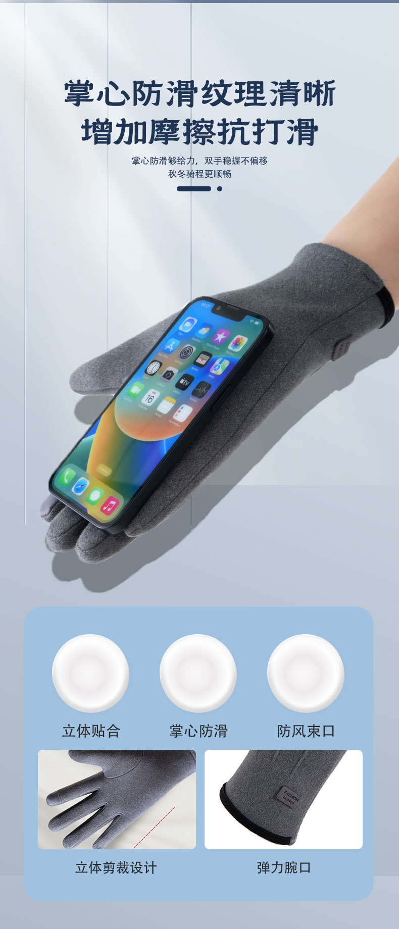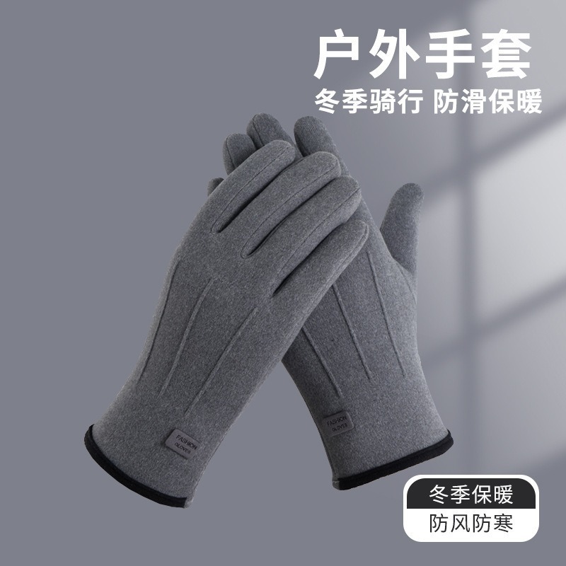 冬季手套男士骑行开车德绒加绒保暖防寒防风骑车可触屏全指手套男