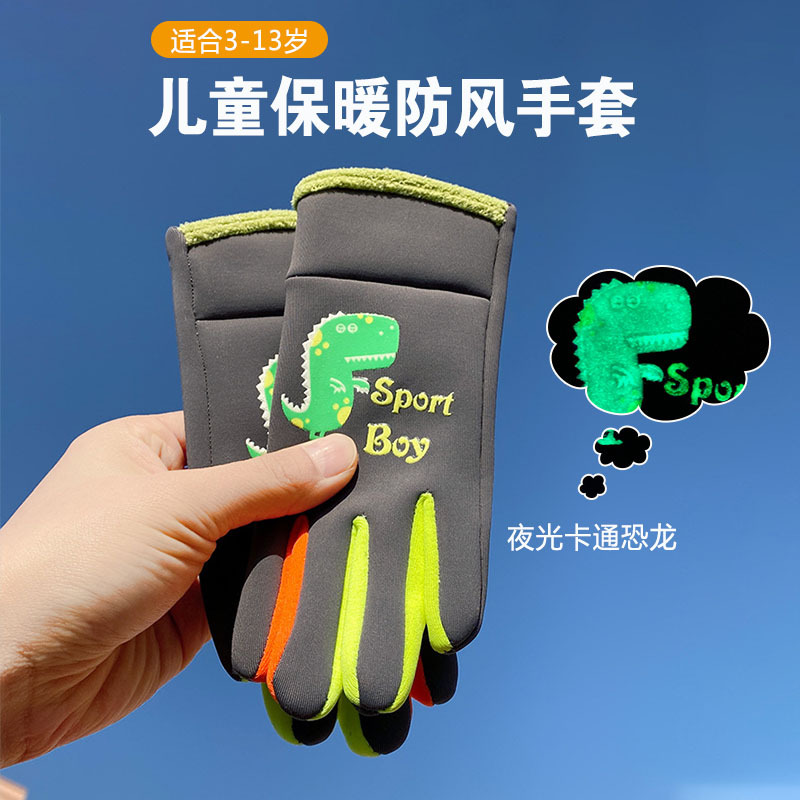 2024冬の新型保温児童手袋小恐竜滑り止め五本指アウトドアスポーツ防寒手袋赤ちゃん冬