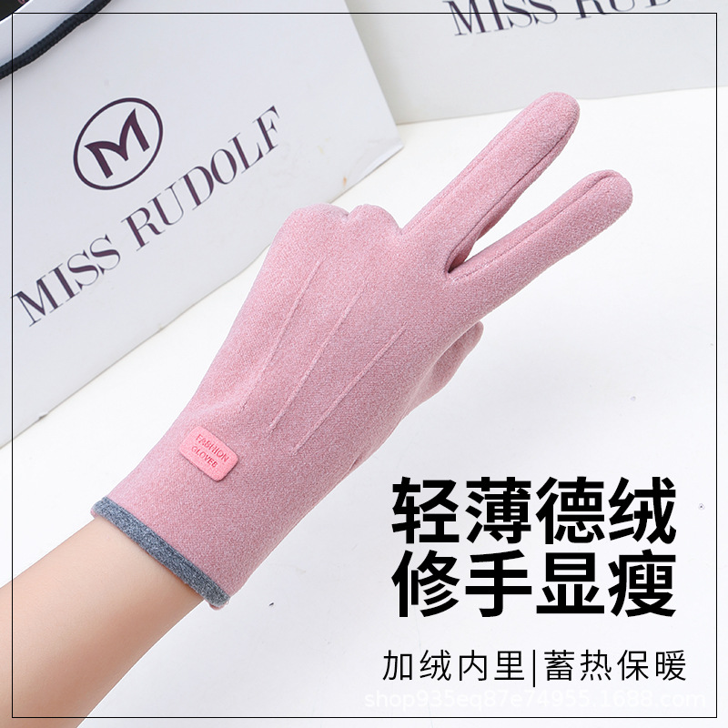 手袋の女性の秋冬のタッチパネルのベルベットの保温スエードのかわいい学生の手袋の騎乗の厚い防風の手袋