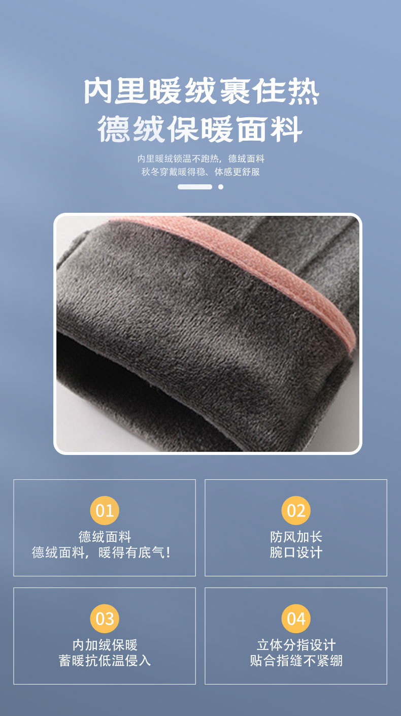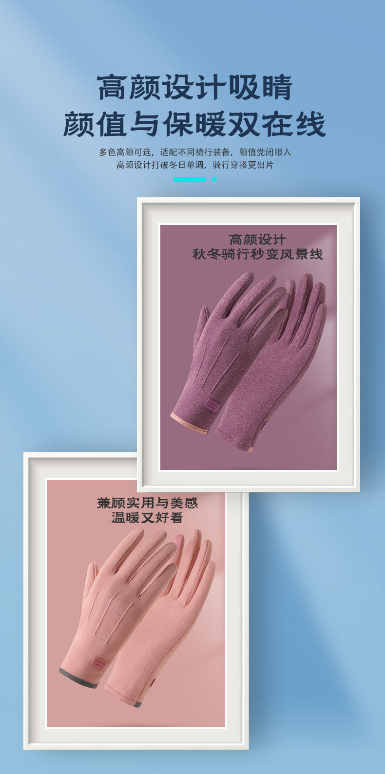 秋冬季女士德绒羊绒保暖防寒加厚绒可触屏户外电动自行车骑行手套