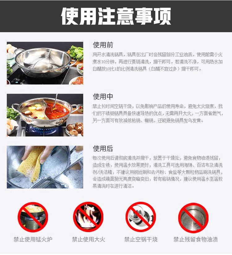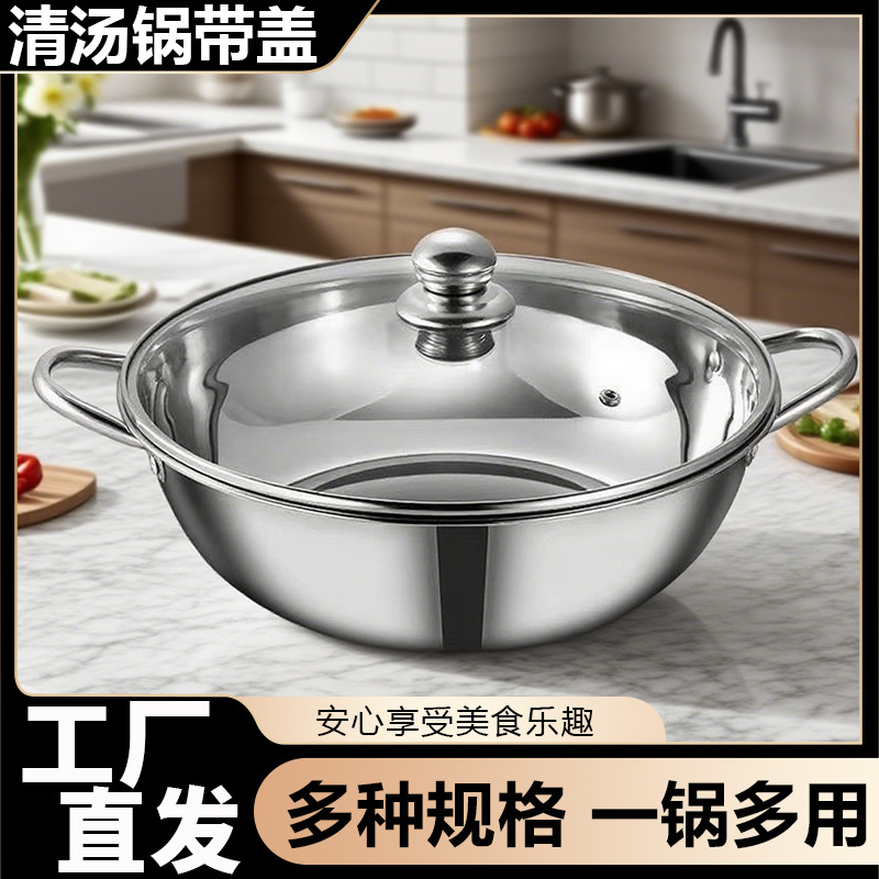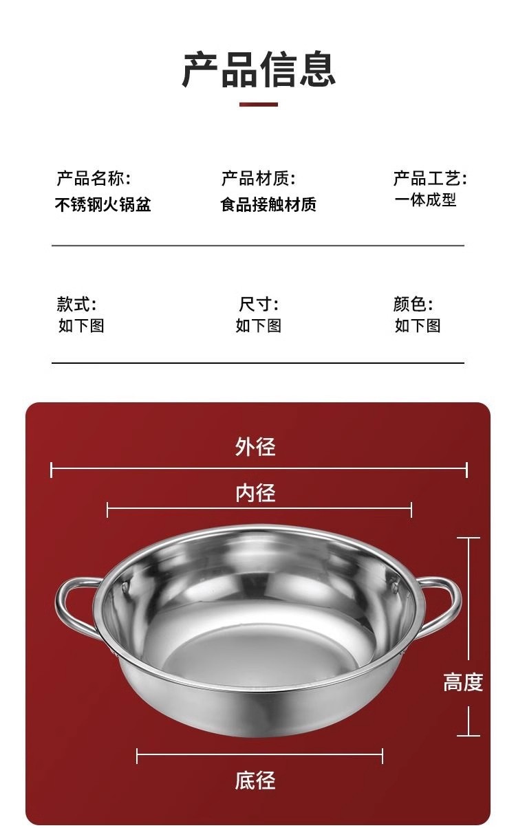 不锈钢锅火锅锅电磁炉锅汤锅火锅盆家用火锅盆鸳鸯锅双耳清汤锅