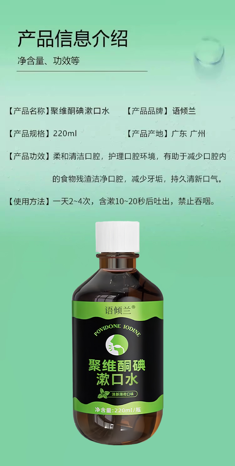 抖音同款语倾兰聚维酮碘含漱液220ml清新口气聚维酮碘漱口水