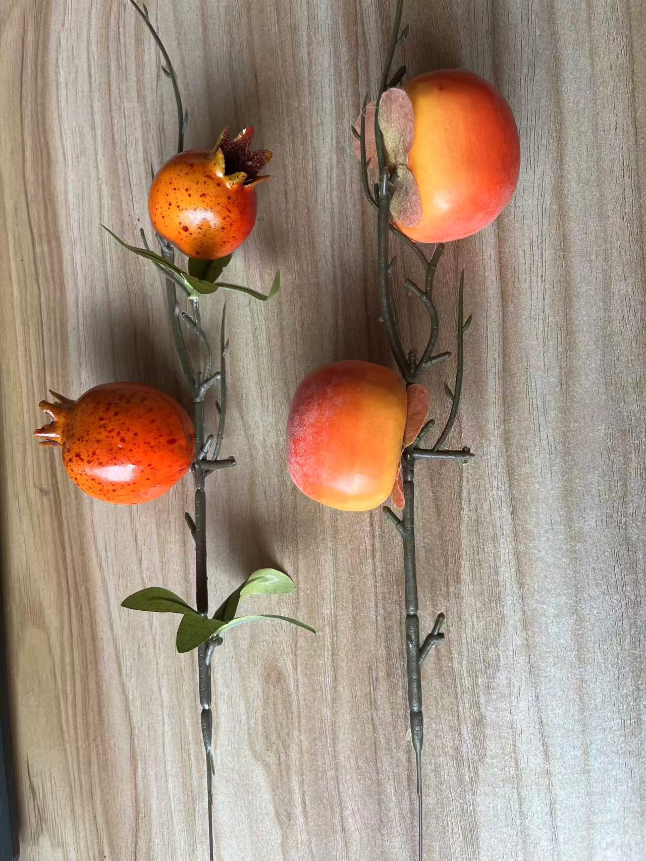 年宵花柿柿如意迷你仿真石榴小果树枝仿真花摆件客厅复古装饰假花