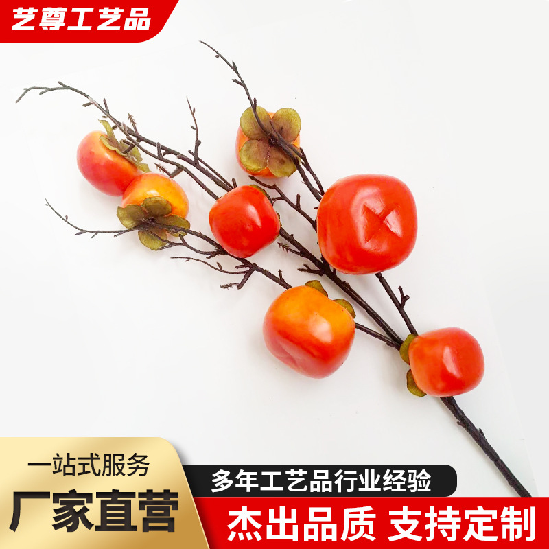 仿真柿子果实树枝假花摆件客厅装饰摆设插花花束源头工厂直发