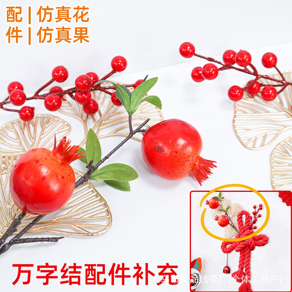 万字结配件假花仿真花冬青果石榴果银杏叶春节新年装饰仿真花假花