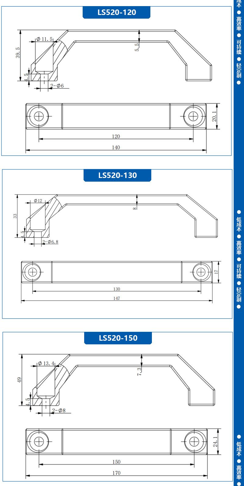 规格 LS520-100(铝合金黑色),LS520-100(铝合金银色),LS520-100(铝合金亮光铬),LS520-100(304不锈钢),LS520-120(304不锈钢),LS520-120(铝合金银色),LS520-130(铝合金黑色),LS520-130(铝合金银色),LS520-130(铝合金亮光铬),LS520-150(304不锈钢)